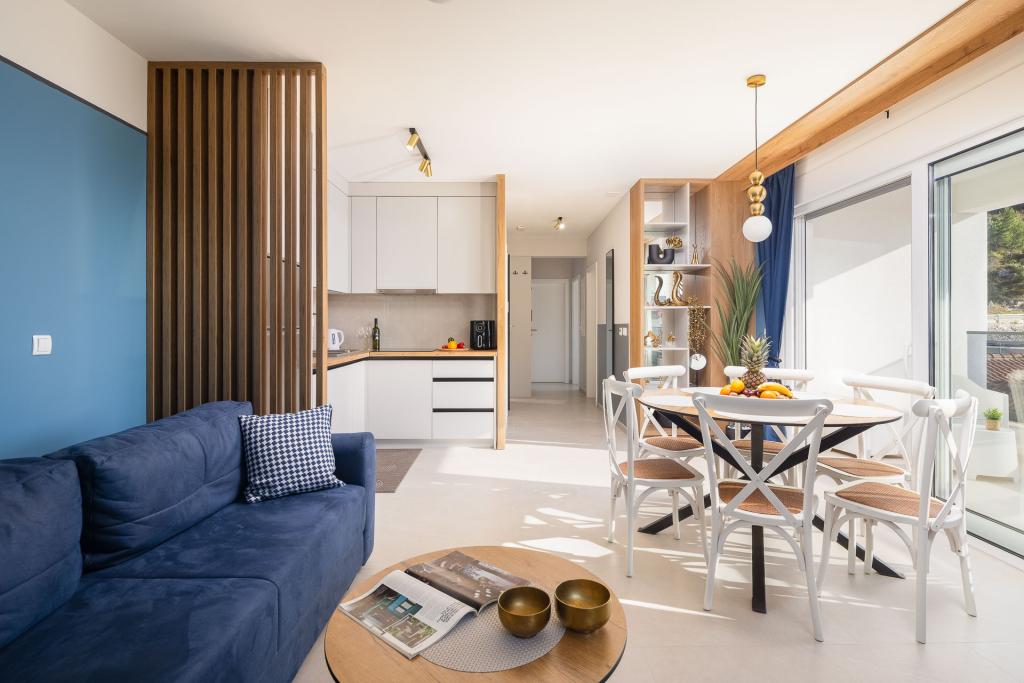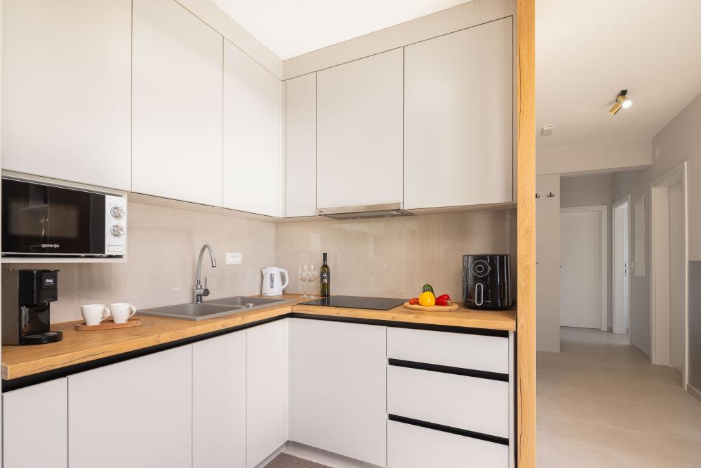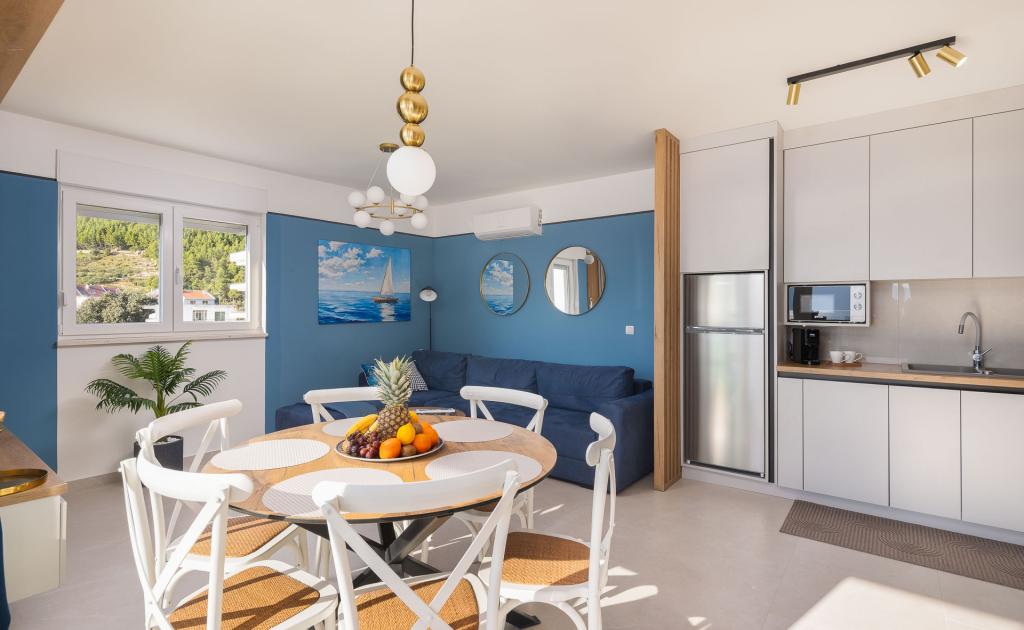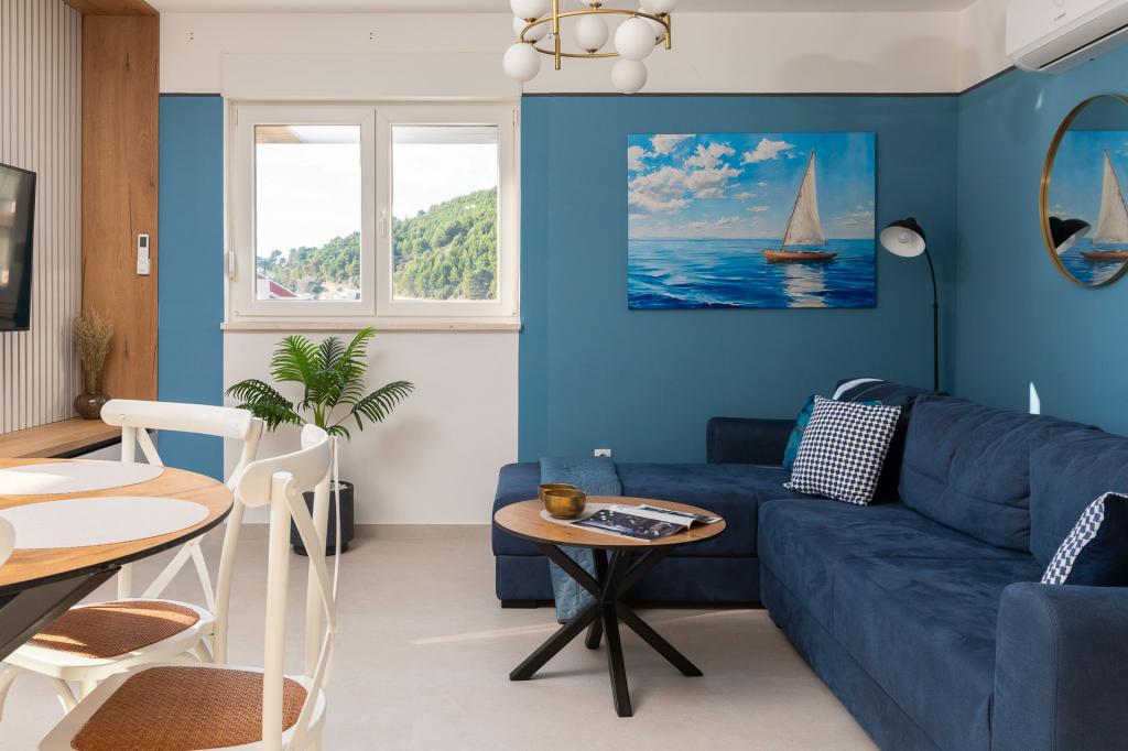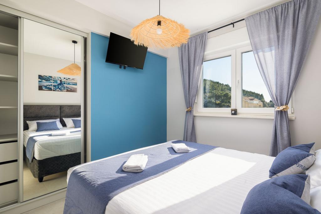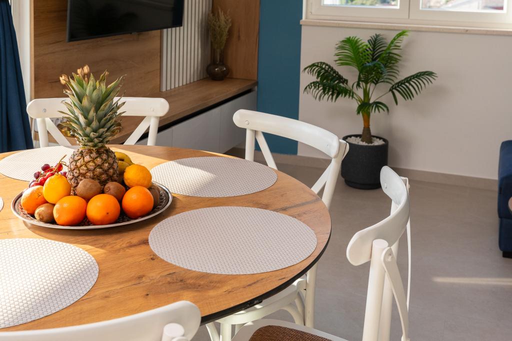 Apartma Zina se nahaja le 150 metrov od plaže v Drveniku in ponuja moderno in udobno namestitev s čudovitim pogledom na morje. Idealen je za družine ali manjše skupine, ki iščejo sproščujoče počitnice ob morju. Apartma ima dve spalnici, eno kopalnico z dodatnim straniščem in dnevno sobo z raztegljivim kavčem. Gostje lahko uživajo na prostornem balkonu s pogledom na morje, na voljo pa so tudi pralni stroj in zasebno parkirno mesto v garaži. Naše osebje vam je na voljo ves čas bivanja, da bo vaš dopust prijeten in brezskrben.