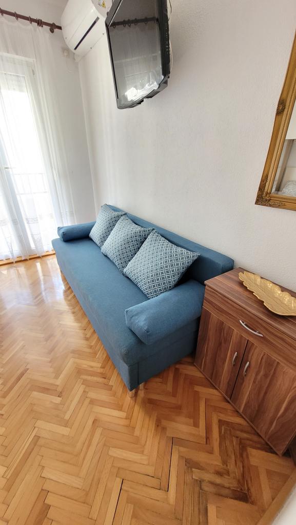 Naši apartmaji so udobni in sodobno opremljeni apartmaji, ki se nahajajo 50 - metrov od morja v mirnem delu Drvenik. Poleg standardne ponudbe naših apartmajev ima udobno teraso s pogledom na morje. Hiša ima veliko dvorišče in žar, kot nalašč za zbiranje velikega števila ljudi in za otroško igro. zrak je doplačilo