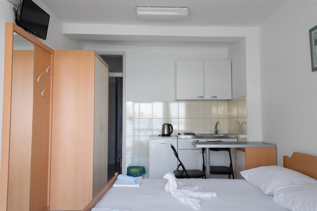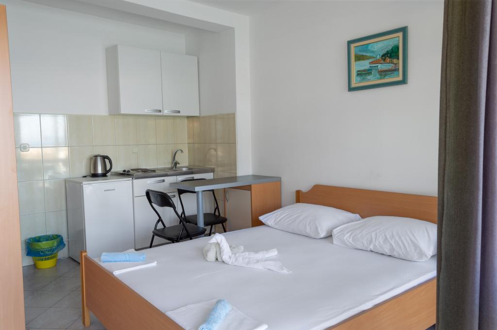 Dobrodošli v apartmajih Ivica! Apartmaji se nahajajo tik ob plaži in vzbujajo poletno vzdušje. Obstajajo 3 apartmaji, od tega dva studio apartmaja. V pritličju je studio apartma s pogledom na plažo in morje. Sestavljen je iz zakonske postelje, kopalnice, kuhinje in terase. V prvem nadstropju sta preostala dva apartmaja. Eden od njih ima čudovit pogled na morje, v katerem lahko uživate vsako jutro in večer. Ima tudi zakonsko posteljo, kopalnico in kuhinjo. Drugi apartma je opremljen z zakonsko posteljo, raztegljivim kavčem, kopalnico in kuhinjo.