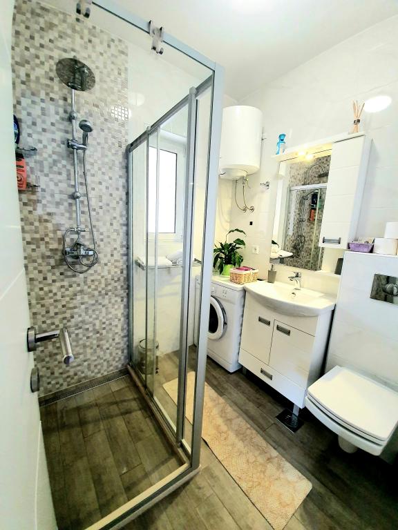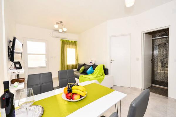 Dobrodošli v novem, luksuznem, južno obrnjenem in sončnem enosobnem stanovanju z veliko teraso, popolnoma opremljeno, le 10-15 minut hoje do starega mestnega jedra! Apartma ima vse, kar potrebujete za udobno in prijetno bivanje tudi za daljše obdobje (pečica, mikrovalovna pečica, kuhalnik vode, kavni avtomat, velik hladilnik, zamrzovalnik, kuhalna plošča, posoda, pomivalni stroj, pralni stroj, sušilnik za lase, likalnik, miza za likanje, TV, wifi, klima...). Gostje imajo ločen vhod in mir. Idealen je za dve osebi, saj ima eno spalnico z veliko zakonsko posteljo z visoko anatomsko vzmetnico, lahko pa sprejme še dve dodatni osebi, saj je v dnevni sobi kavč, ki se raztegne v udobno ležišče 160x200. Odlična lokacija, tiho, varno in približno 10 minut od mesta, pa tudi ne potrebujete avtomobila, da pridete do starega mestnega jedra, vendar za tiste, ki ne marate peš, je avtobusna postaja približno 100 metrov od stanovanje, avtobusi 3 in 3a pa vozijo direktno na Pile, do avtobusne postaje in glavnega pristaniškega pomola (za izlete na otoke).