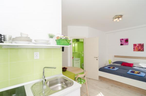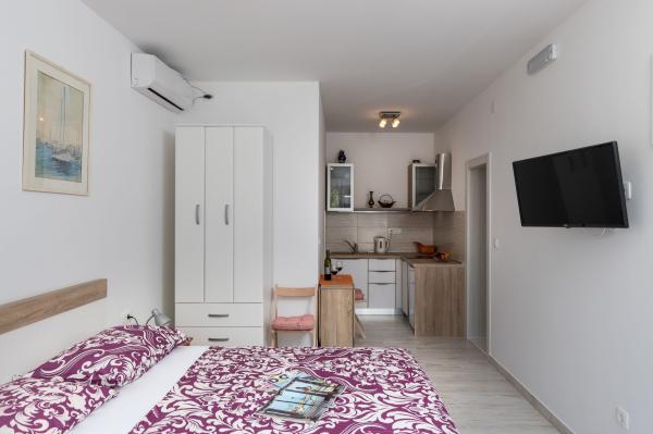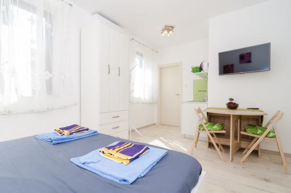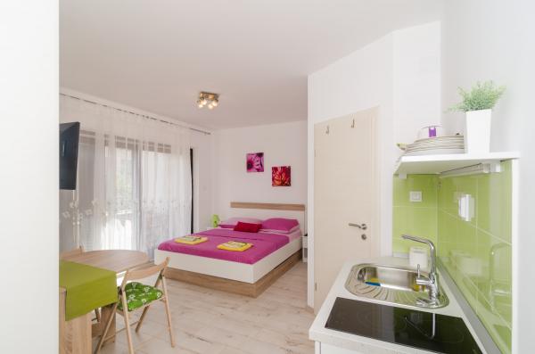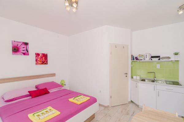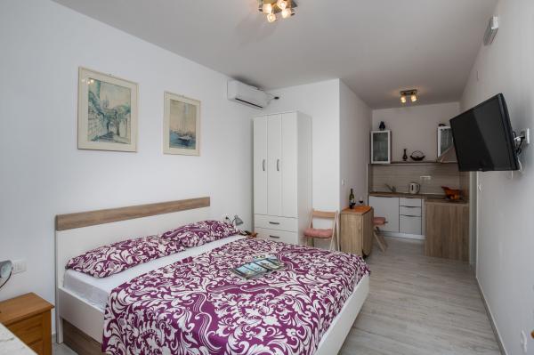 Kompleks 9 studio apartmajev za dve osebi in en studio apartma za 3 osebe v mirnem in lepem delu Dubrovnika, na območju Babin Kuk / Lapad. Objekt se nahaja 10-15 minut z avtobusom iz Straduna in le 5 minut peš od centra Lapad. Več lepih plaž je od apartmajev oddaljeno le 5 min hoje. Vsi apartmaji so v celoti in na novo urejeni, vsak ima svoj zasebni vhod, kuhinja, kopalnica, internet in TV. Gostom je na voljo velika terasa in žar, zasebno parkirišče pa je brezplačno in na voljo glede na kapaciteto (potrebna je rezervacija).