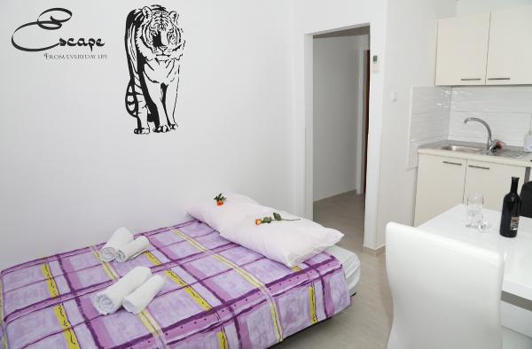 Dobrodošli v novih, modernih apartmajih v srcu Dubrovnika-Lapad. Apartmaji se nahajajo na mirni lokaciji in so sestavljeni iz sobe, banje in kombinacije kuhinja-dnevni prostor. Apartmaji imajo tudi velike zasebne terase. Apartmaji so popolnoma opremljeni z vsem, kar potrebujete za idealne počitnice (klima, WIFI, kabelska TV, popolnoma opremljena kuhinja). Tik po ulici se boste znašli v zalivu Lapad, kjer lahko popijete pijačo v številnih barih ali poskusite dubrovniške specialitete v restavracijah ob zalivu Lapad (50 metrov od apartmaja). Na dnu zaliva Lapad boste našli čudovito peščeno plažo, kjer lahko uživate v soncu in morju (100 metrov od apartmaja). Če želite iti v staro mestno jedro, je avtobusna postaja 30 metrov stran in do starega mestnega jedra lahko pridete v 10 minutah. Apartma ima zasebno varovano parkirišče. Vabimo vas, da pridete in občutite čar Dubrovnika v apartmaju Lapad...