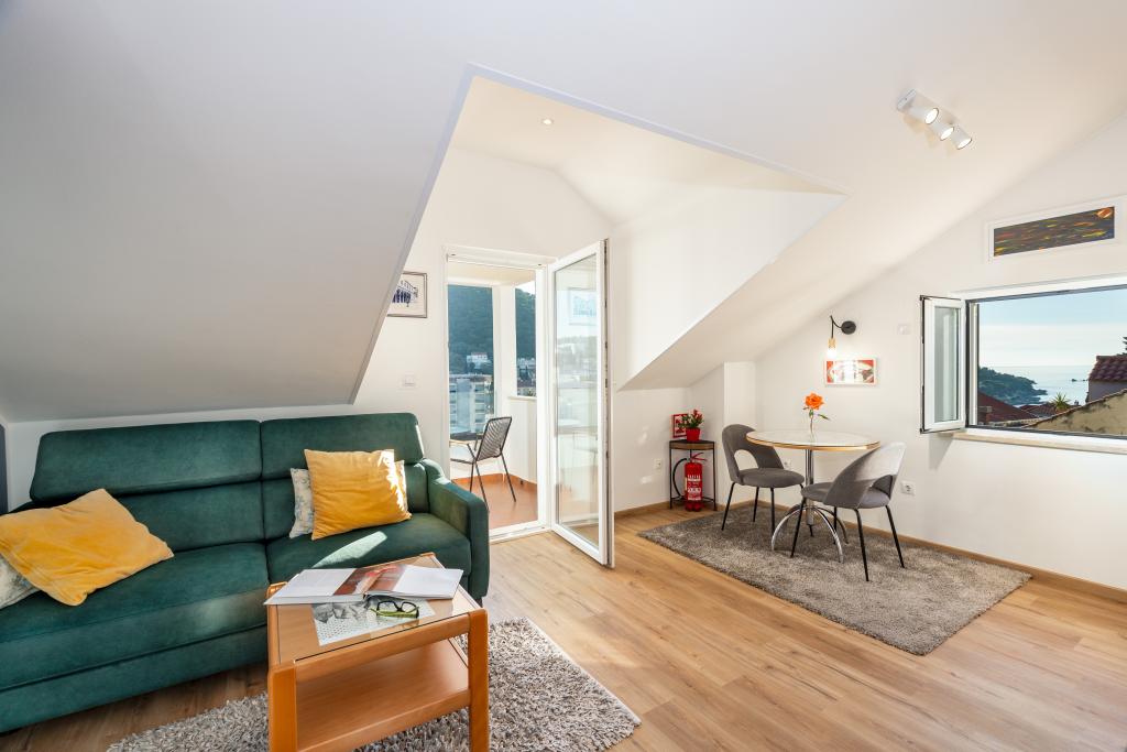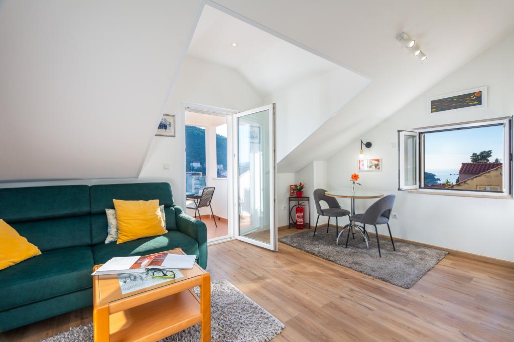 Moderni in udobno opremljeni apartmaji na polotoku Lapad v Dubrovniku. Nahajajo se v mirnem predelu z družinskimi hišami le nekaj minut peš skozi sprehajališče do plaže. V bližini restavracij, kavarn, trgov, supermarketov in javnega prevoza vsakih deset minut do zgodovinskega mestnega jedra. V objektu sta dva apartmaja za dve osebi z eno spalnico, dnevno sobo, kuhinjo, kopalnico in balkonom s pogledom na morje.