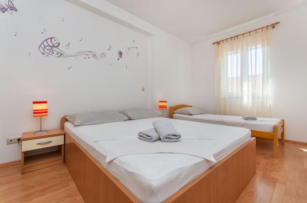 Turistična taksa je vključena v ceno.Na peščeni plaži vam ponujamo naravno senco tamarisa. V soseščini imate možnost najema čolna, jet skija, jadralno padalstvo, v centru mesta pa sodelujemo z agencijami, ki organizirajo aktivnosti kot so rafting, soteskanje, zip-line, potapljanje, prosto plezanje, paintball, izleti z ladjo v naravo park Radmanova Mlinica. Na plaži sta picerija in kavarna, za izlete na bližnje otoke pa bo poskrbel gostitelj sam z zasebno ladjo, ki ni vključena v ceno.