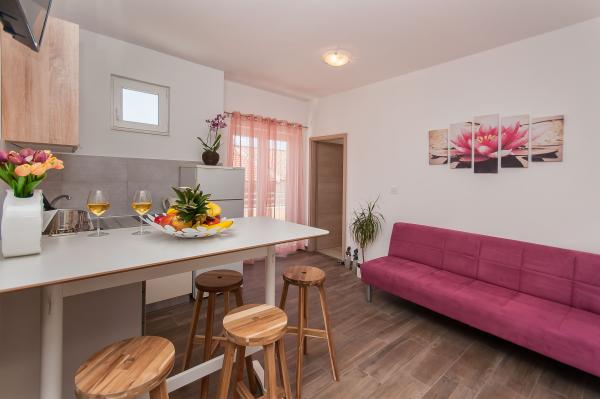 Če želiš preživeti popoln dopust priporočam apartmaje Joško. Ni je stvari nad katero bi se lahko pritožila. Apartma točno takšen kot na slikah; čist, prostoren. Apartmaju pripada parkirni prostor, ki je tvoj in tudi če z avtomobilom kam odideš ni bojazni da nimaš kje parkirati. Lokacija apartmaja je popolna. Nekaj korakov do peščene plaže z naravno senco. Nekaj korakov do trgovine, restavracij, barov. Vse je na dosegu roke. Apartmaji imajo tik ob plaži zaseben senčen prostor s kaminom, mizami in klopmi, ki ga lahko uporabiš. Kar se tiče lastnikov pa kapo dol. Prijazni, ustrežljivi... Z veseljem smo tu in tam poklepetali. Z veseljem se vrnem.