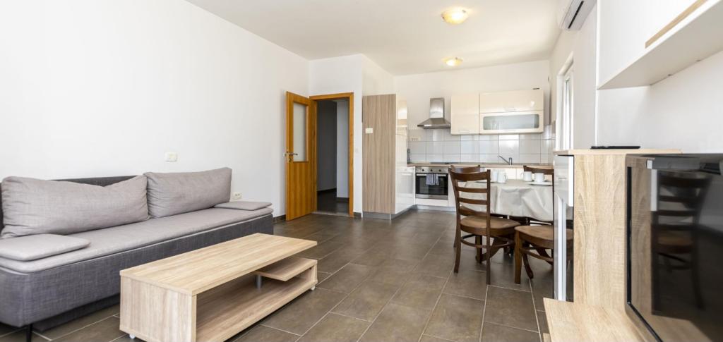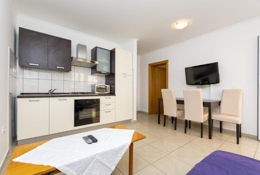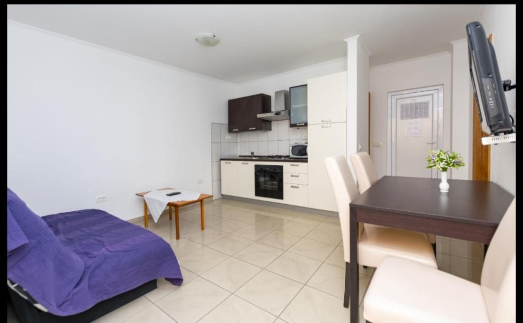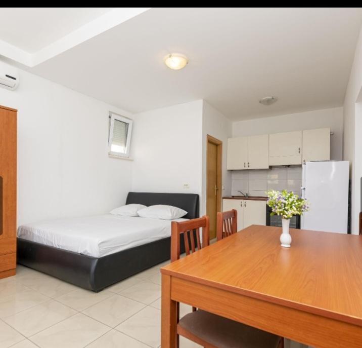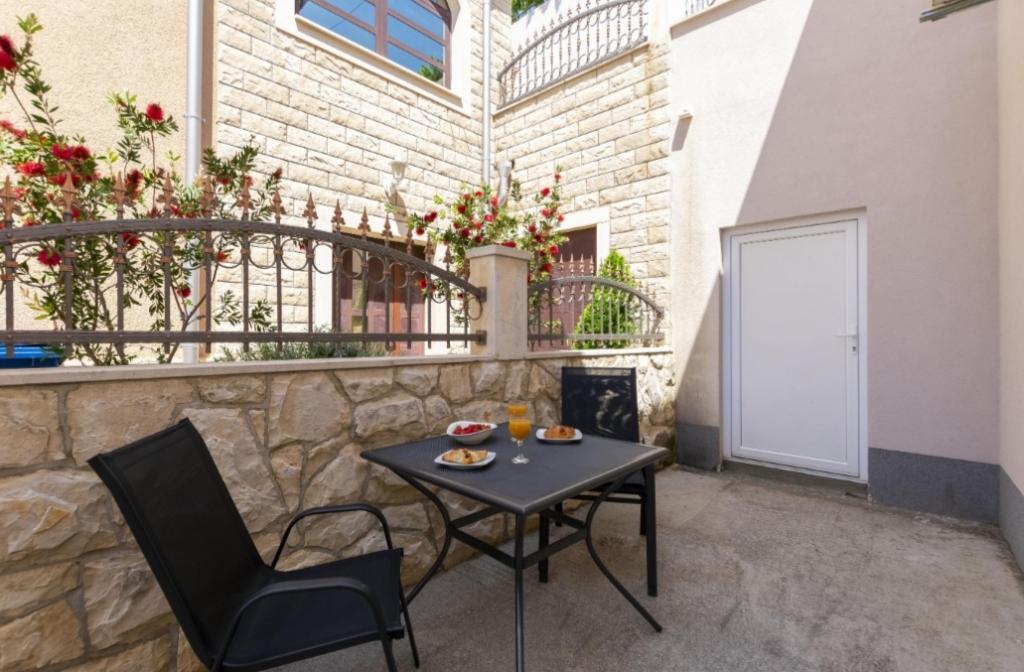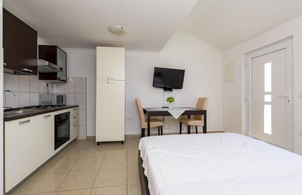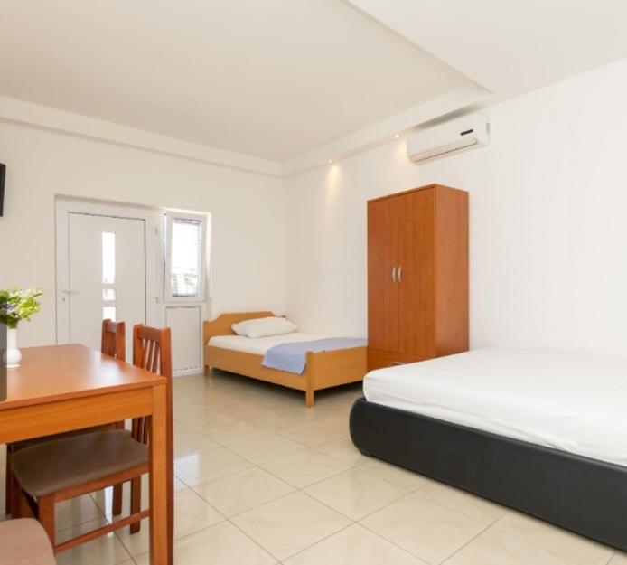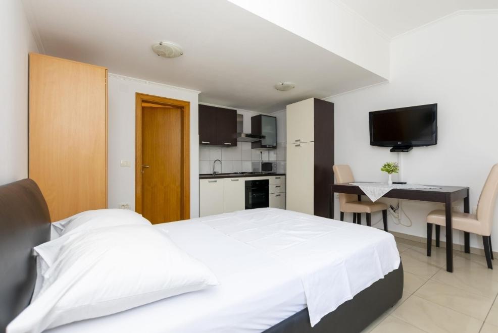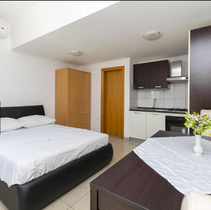 Ponujamo šest na novo urejene apartmaje različnih velikosti. Vsak apartma je opremljen s polno kuhinjo in vsemi potrebnimi napravami in pripomočki, s satelitsko televizijo in klimatsko napravo. Vsi apartmaji imajo teraso s pogledom na morje. V bližini našega apartmaja je lepa peščena plaža z veliko objektov, kot so kavarne, restavracije. Za vašo parkirno mesto.
