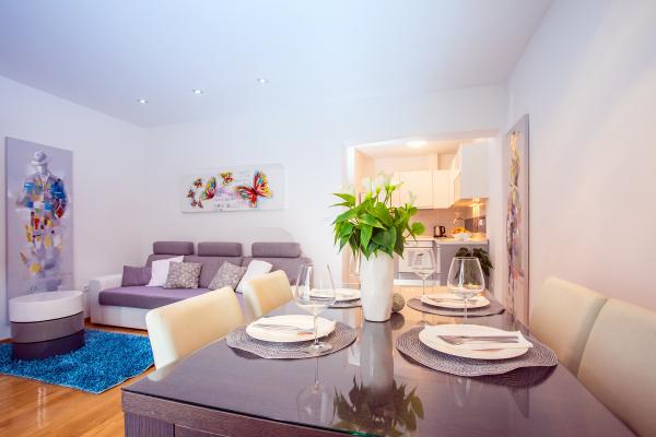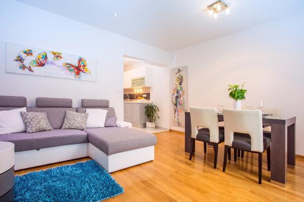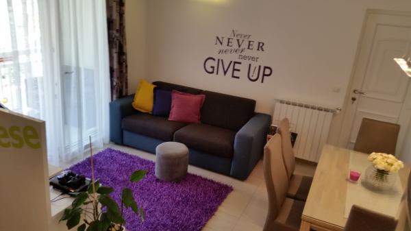 Novo stanovanje dobro opremljena v mirni okolici Splita. Apartma se nahaja 2 minuti hoje od centra mesta in 5 minut od plaže in se nahaja tik ob športnem objektu. Apartma se nahaja v mirni ulici v prvem nadstropju stanovanjske hiše. Vključuje: klimatsko napravo; TV s 900 programi; wi fi internet; pomivalni stroj, pralni stroj, in popolnoma opremljeno kuhinjo. Apartma ima eno spalnico z zakonsko krevettom; dnevna soba s kavčem, 1 kopalnico in balkon z mizo in stoli, ter garažo za avto. Doamćin je na voljo za vse Coyne pomoč in nasvet. Mi smo veseli vsakega vašega prihoda.