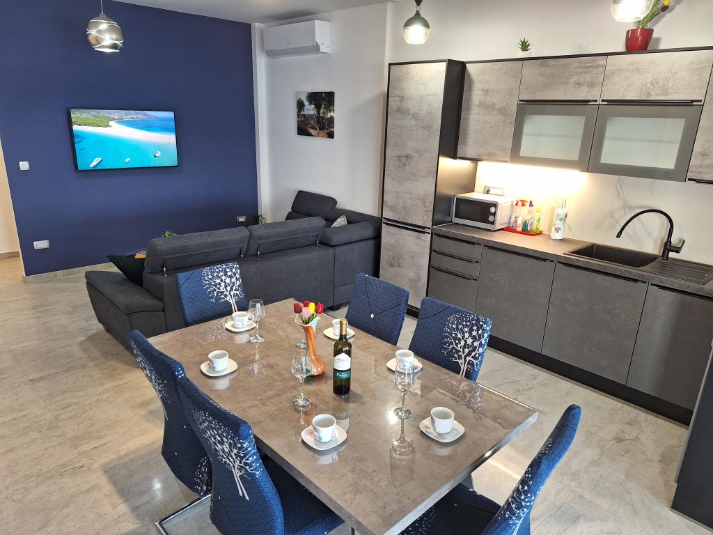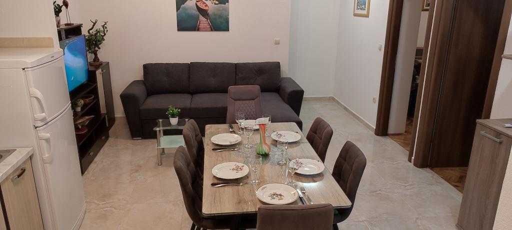 Apartmaji Mušac se nahajajo v kraju Dugi Rat - Duće, s čudovitimi plažami in veliko sonca, le 25 km od Splita ali Makarske in 5 km od Omiša! Prvi apartma za 6 oseb se nahaja v prvem nadstropju (pritličju) hiše. Sestavljen je iz dveh velikih spalnic, dveh stranišč, dnevne sobe, kuhinje in terase. Na voljo je tudi žar. Drugi apartma (nov, zgrajen l. 2024 v mansardi) za 7 oseb se nahaja v zadnjem nadstropju družinske hiše. Sestavljen je iz treh sob, dnevne sobe, kuhinje, dveh stranišč in balkona. Apartmaji so od plaže oddaljeni 100 metrov. Z balkona je čudovit pogled na Jadransko morje in otok Brač. Za vsak apartma sta našim gostom na voljo dve parkirni mesti pred hišo. Končno čiščenje in turistična taksa sta vključeni v ceno. V samem centru Dugega Rata (samo 10 minut hoje) so supermarketi, kavarne, pošta, pekarna, cerkev, menjalnica... 5 km od Dugega Rata je Omiš, 20 km od Splita. Omiš je znan po reki Cetini (rafting, zipline).
