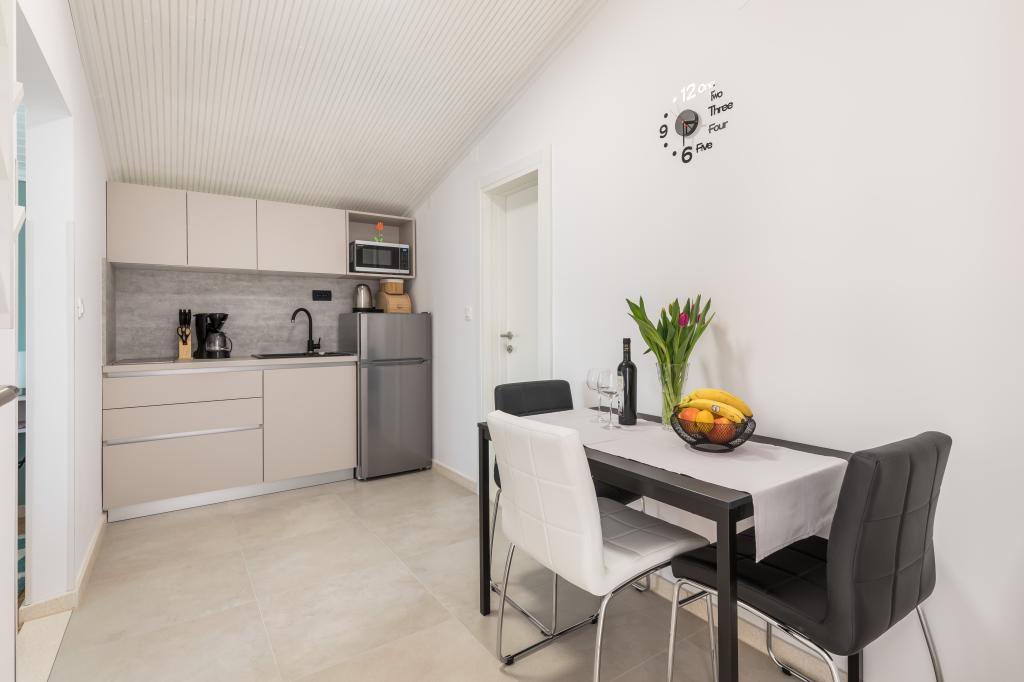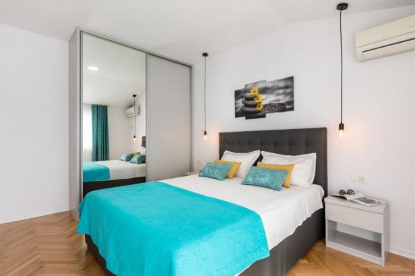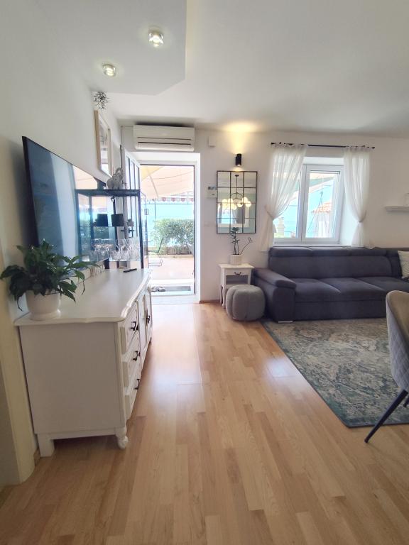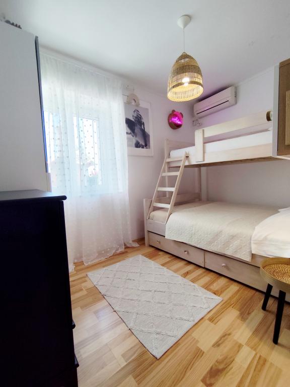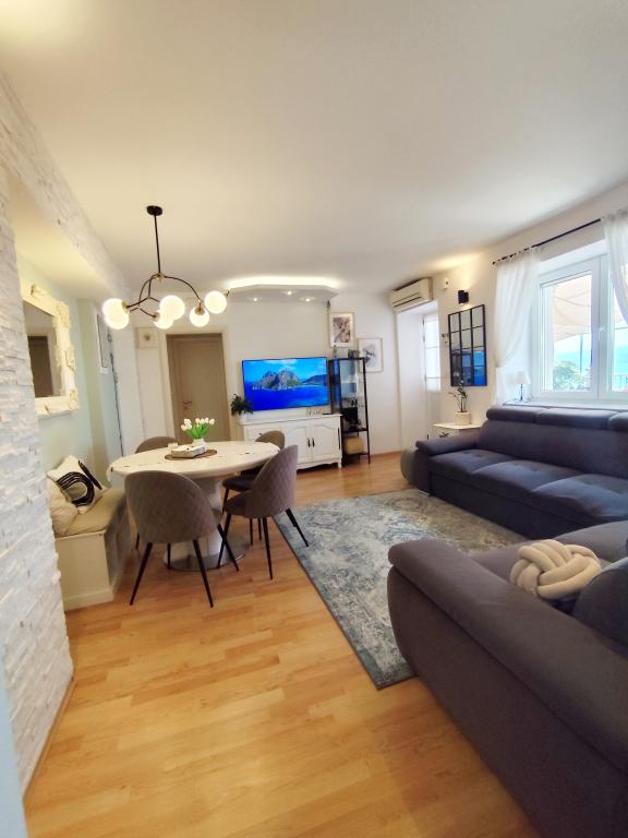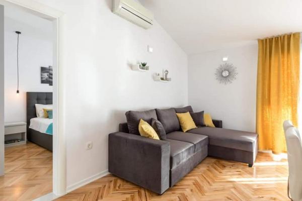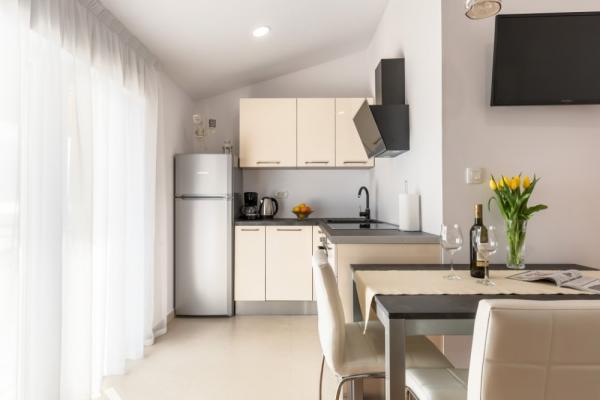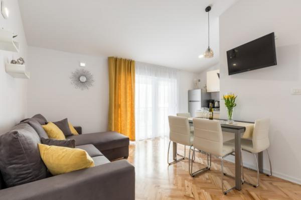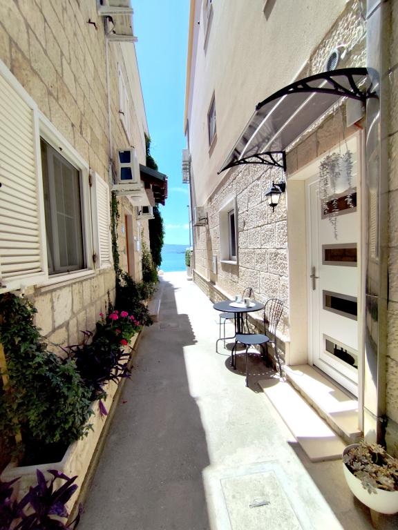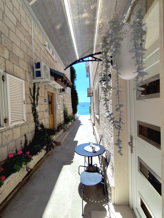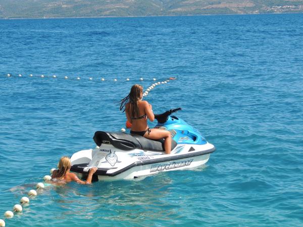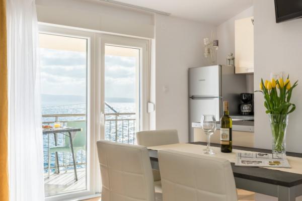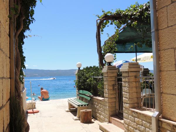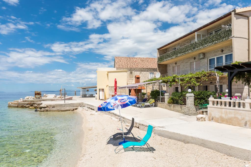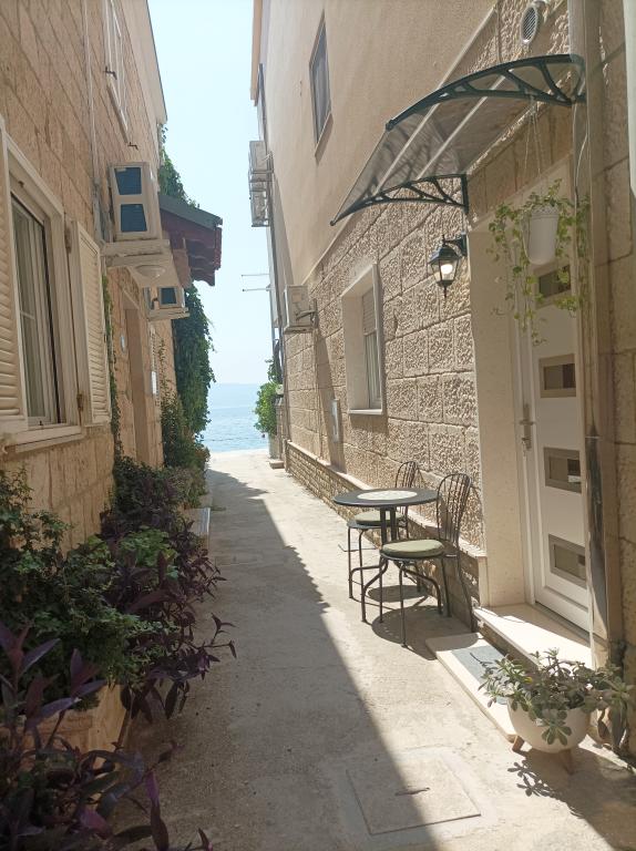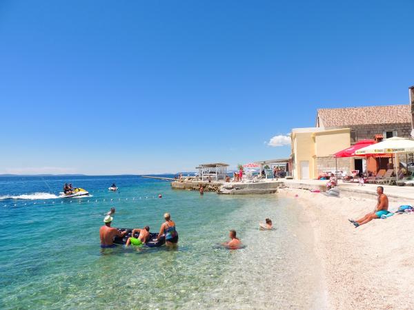 Za tiste, ki si želite miru in udobja, bo ta kraj stoodstotno primeren. Na plaži, čisto, lepo, ležalniki, tuš. Zraven lokala vodni skuterji. Gosti veselje, tišina, umiritev, stran od množice turistov. Super za otroke, v bližini vode, plaže, Na plažo vam ni treba nositi ničesar, saj je plaža korak stran od apartmaja. Tu je parkirišče. Če zamudite pogled na mesto in turiste, se z avtobusom odpravite do Omisije manj kot 10 minut. Vsako leto sem in bom na tem mestu. Jaz bi priporočal.