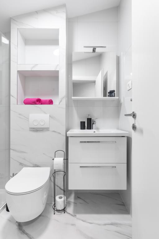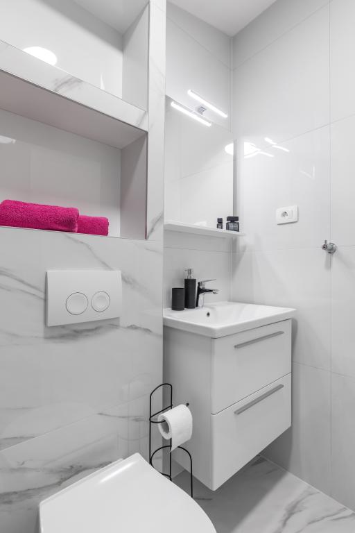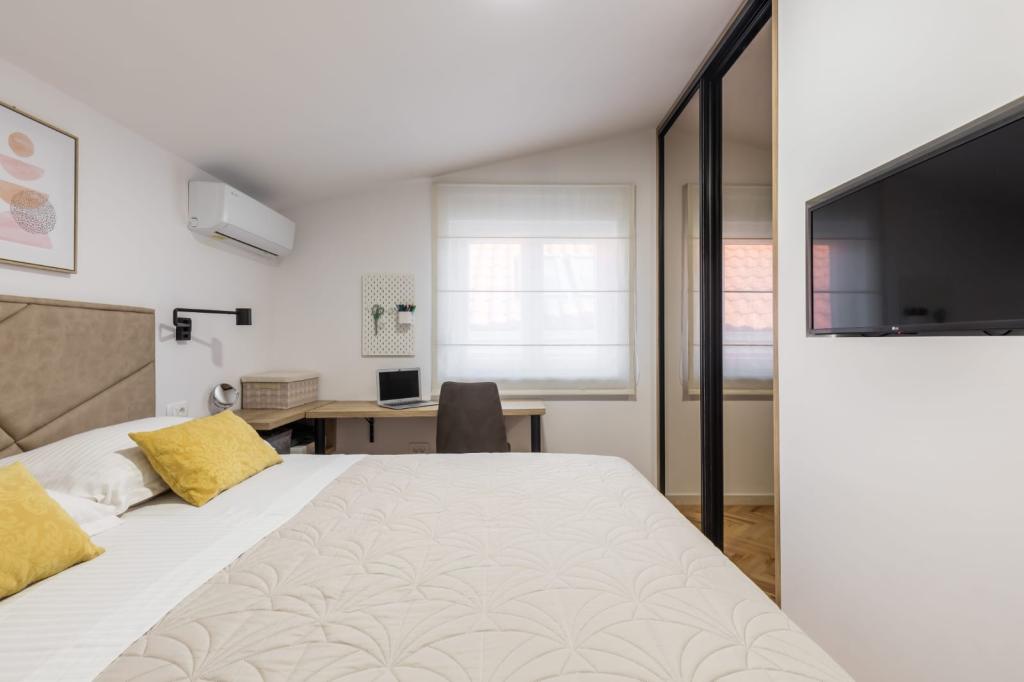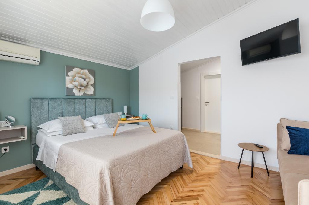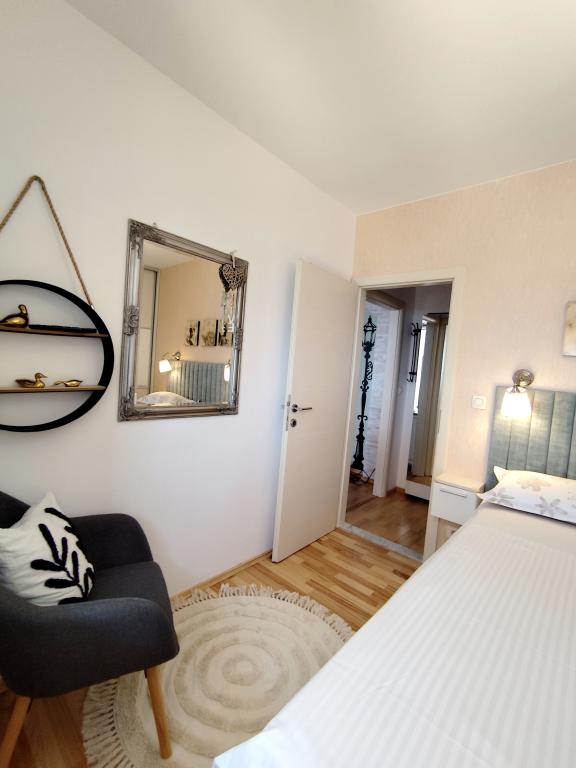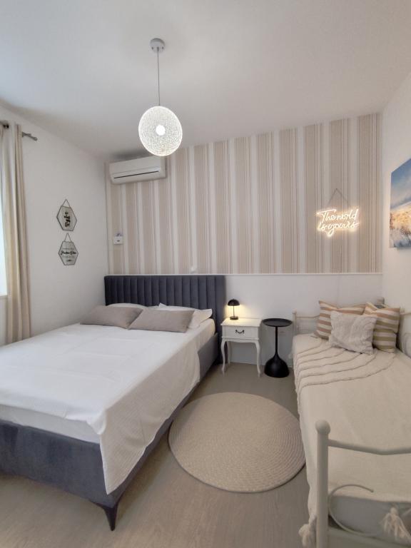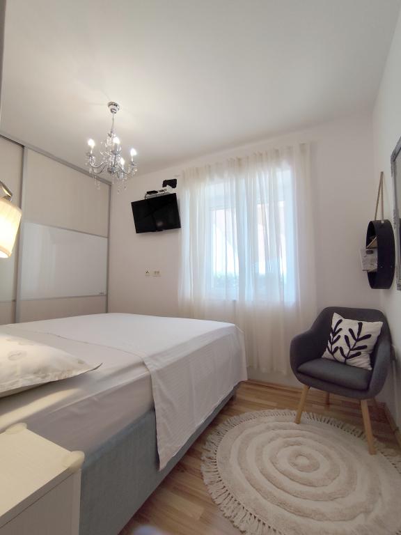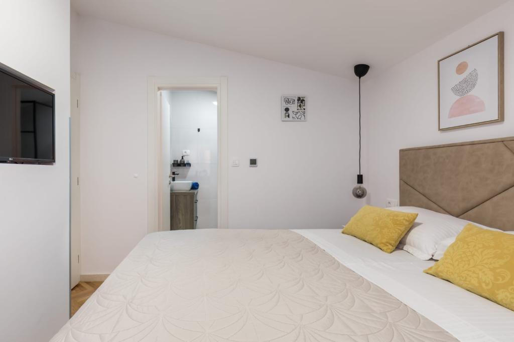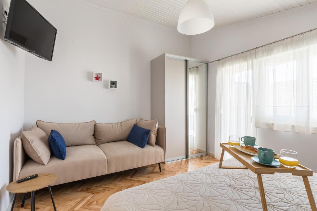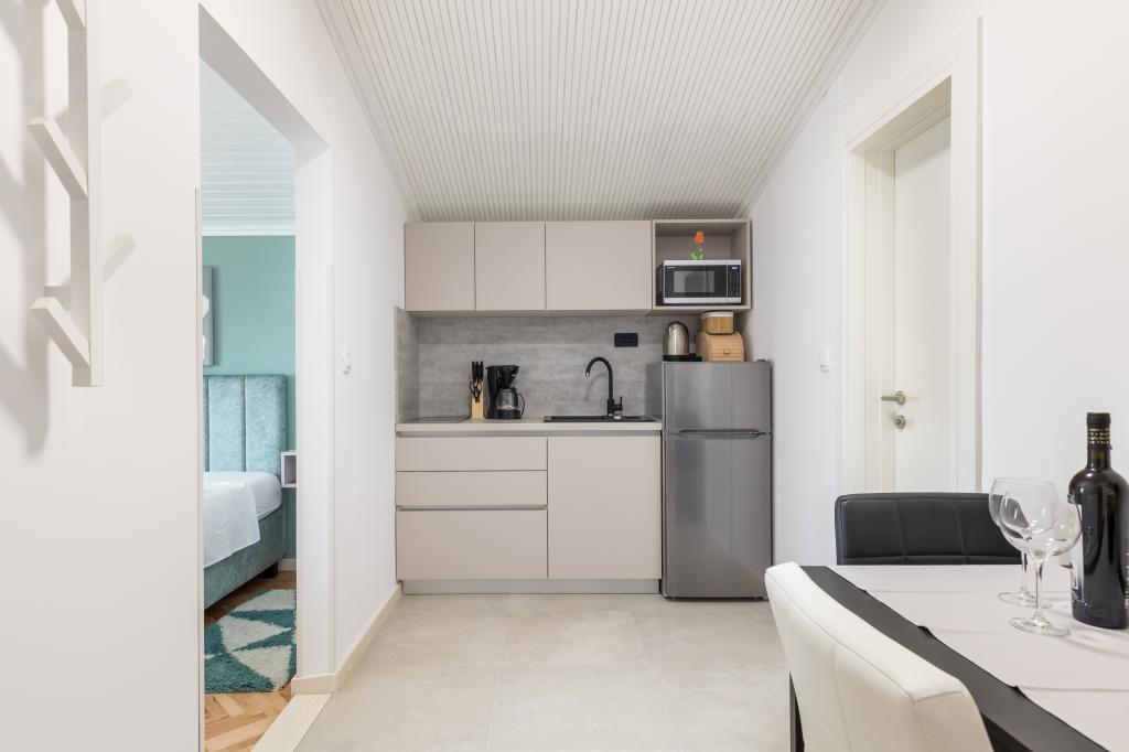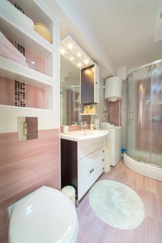 Za tiste, ki si želite miru in udobja, bo ta kraj stoodstotno primeren. Na plaži, čisto, lepo, ležalniki, tuš. Zraven lokala vodni skuterji. Gosti veselje, tišina, umiritev, stran od množice turistov. Super za otroke, v bližini vode, plaže, Na plažo vam ni treba nositi ničesar, saj je plaža korak stran od apartmaja. Tu je parkirišče. Če zamudite pogled na mesto in turiste, se z avtobusom odpravite do Omisije manj kot 10 minut. Vsako leto sem in bom na tem mestu. Jaz bi priporočal.
