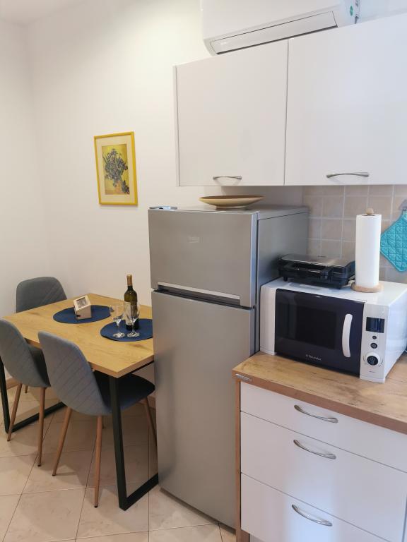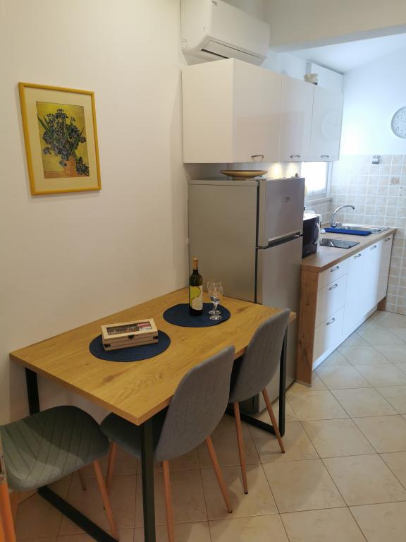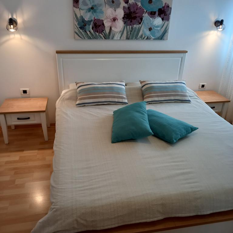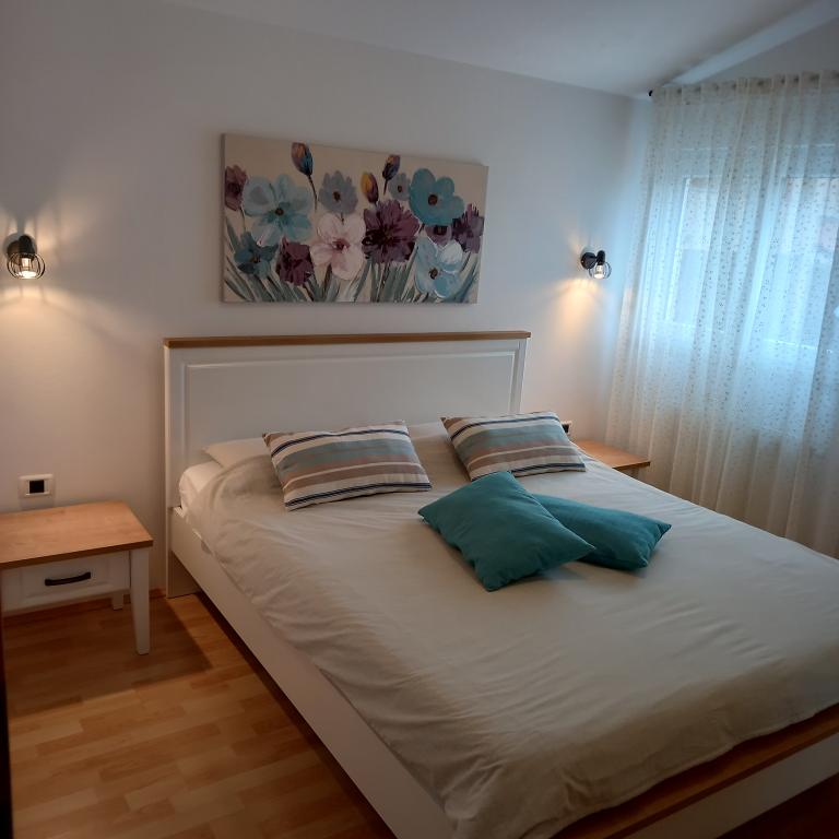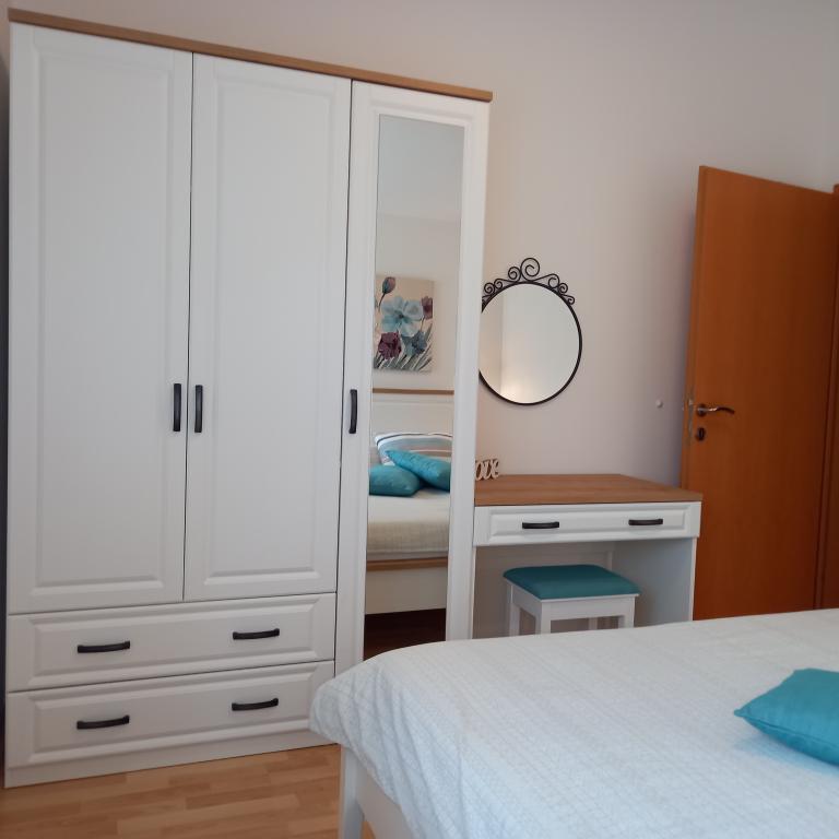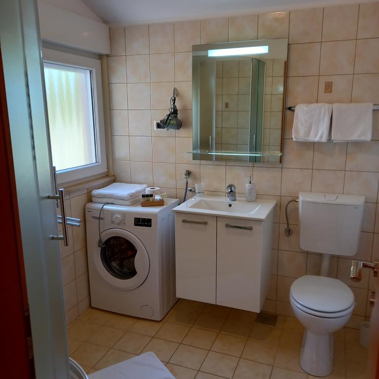 Tukaj smo preživeli čudovitih 12 dni z 2 otrokoma. Dodatna prednost je otroško igrišče in vrt (zelo urejen). Apartma je opremljen z vsem, kar potrebujete (ima tudi pralni stroj in to je velik plus :D), je prostoren, čist in tukaj se je super sprostiti. Za hišo lahko uporabljate žar. Lastniki so ustrežljivi in prijazni. Do plaže za kampom se lahko sprehodite, vendar to niso bile naše sanje (brez sence). Raje sva kupila dolgoročno karto za mestna parkirišča in se odpeljala v center na plažo, kjer je igrišče in restavracija. Apartma Irena priporočam z vsem srcem. Hvala vam.
