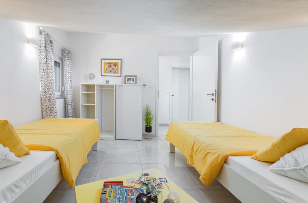 Popolnoma novo, udobno stanovanje v hiši zgrajene leta 2017. Nahaja se le 10 minut hoje od plaže in centra mesta, v zelenem in mirnem delu Fažane. Apartma se nahaja v prvem nadstropju družinske hiše in nudi popolno zasebnost ter možnost sprostitve in sprostitve. Ima 45 kvadratnih metrov, eno spalnico, raztegljiv kavč v dnevni sobi za dve dodatni osebi, dnevno sobo z jedilnico, kuhinjo z vsemi potrebnimi aparati, velik balkon s pogledom na naravo, kopalnico. Soseska je zelo mirna, v okolici je le nekaj družinskih hiš. Po drugi strani pa ni daleč od plaže in centra mesta. Najbližja tržnica je oddaljena 5 min hoje. V centru je veliko restavracij, kavarn, trgovin, trgovin s spominki, lekarne, zdravnika, pošte, banke, avtobusne postaje, bankomatov - vse kar potrebujete za popoln oddih!