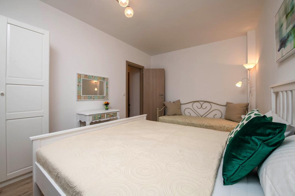 Apartma je opremljen z vsem, kar potrebujete. Udoben 10-minutni sprehod do plaže. Vredno se je raziskati tudi zaledje. Najemodajalci so zelo topli in skrbni ljudje, vedno na voljo za vprašanja ali pomisleke. Ko Nada nekaj speče, Zdravko nekaj prinese, vključno z vinom in travarico. Mimogrede, Zdravko zelo dobro govori nemško in vedno daje nasvete za izlete ali ... Lepo je sedeti na pokriti terasi. Vse v hiši in okoli nje je zelo dobro vzdrževano. Za izlete v pekarno ali supermarket so na voljo kolesa.
