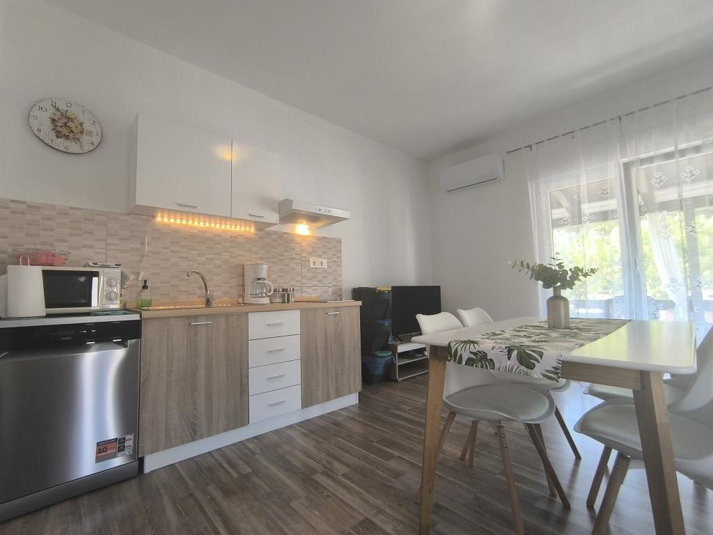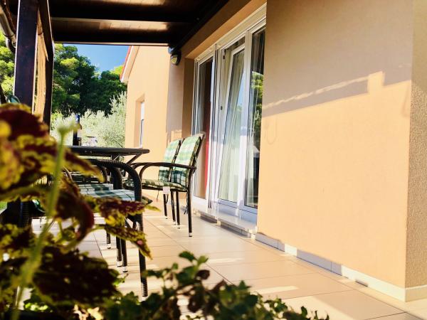 To je tisto, kar smo na Hrvaškem iskali že vrsto let - prostoren, udoben apartma v pritličju za do 6 oseb, s teraso med oljkami, v mirnem okolju. Veliko prostora v sobah in oprema za dolgotrajno bivanje - velik hladilnik, kuhinja s pomivalnim strojem in mikrovalovno pečico, pralni stroj in še marsikaj uporabnega. Stanovanje je čisto, negovano, prečiščeno in odlično opremljeno. Okna imajo mreže proti komarjem in zatemnitvene rolete ter klimatsko napravo, ki omogoča oddih od vročine. V sosednji hiši živijo zelo prijazni in komunikativni gostitelji, vedno lahko računate na njihovo pomoč in dragocene nasvete. Poleg tega lahko kupite oljčno olje te družinske kmetije. Hvala gospa Suzana za prijazno gostoljubje, zagotovo se še vrnemo! Pozdrav iz Poljske - Bartek in njegova družina