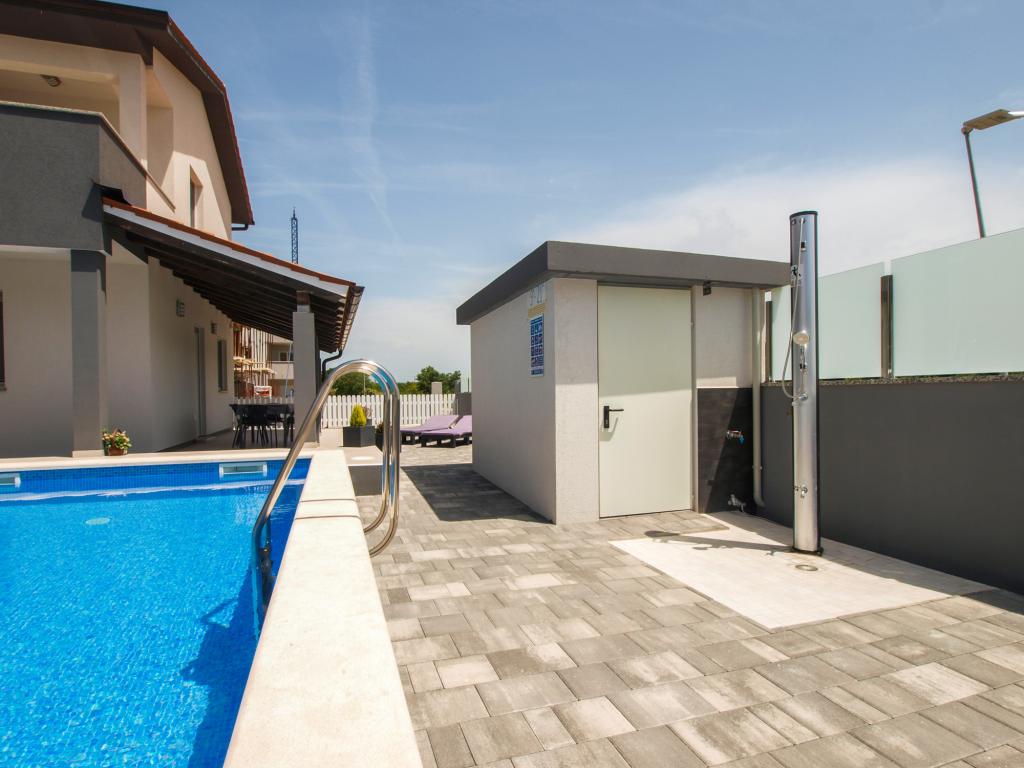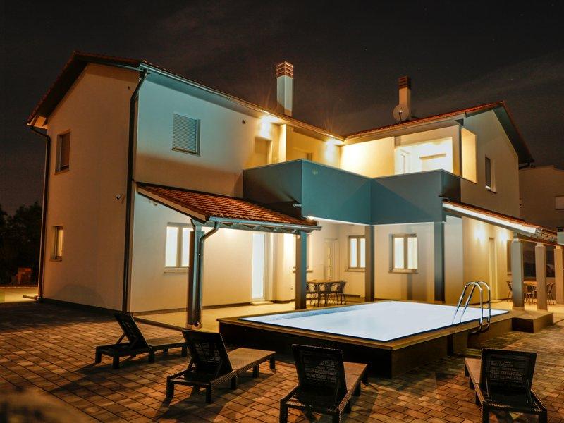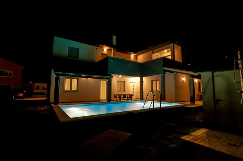 moderni apartmaji, 65m2, terasa25 m2, bazen na dvorišču, brezplačno parkiranje v objektu, brezplačen internet vse nove in moderne, oddaljenost od plaže približno 1000m, oddaljenost od Fažane2500m, od Pule 3000m, od Brijuni cca4000m. Apartmaji so del družinske vile, ki je idealna za družinske počitnice
