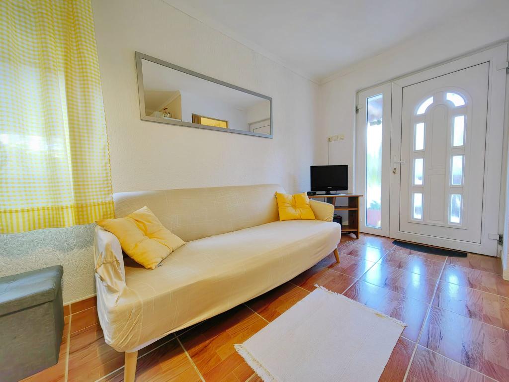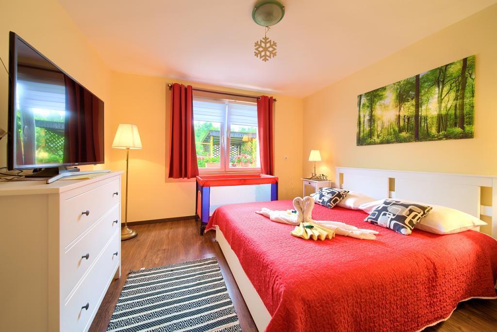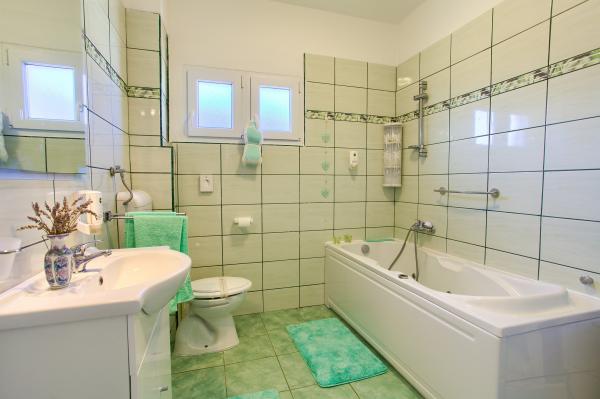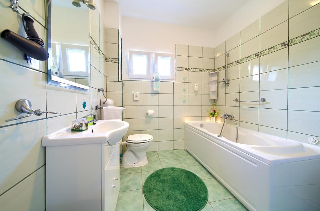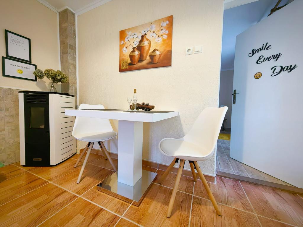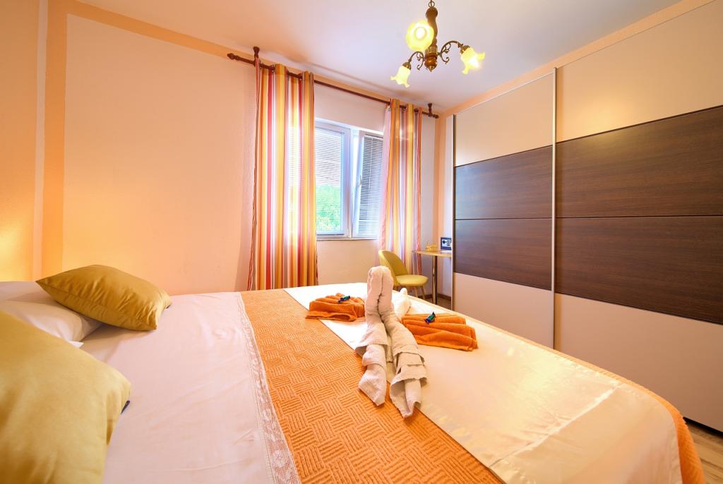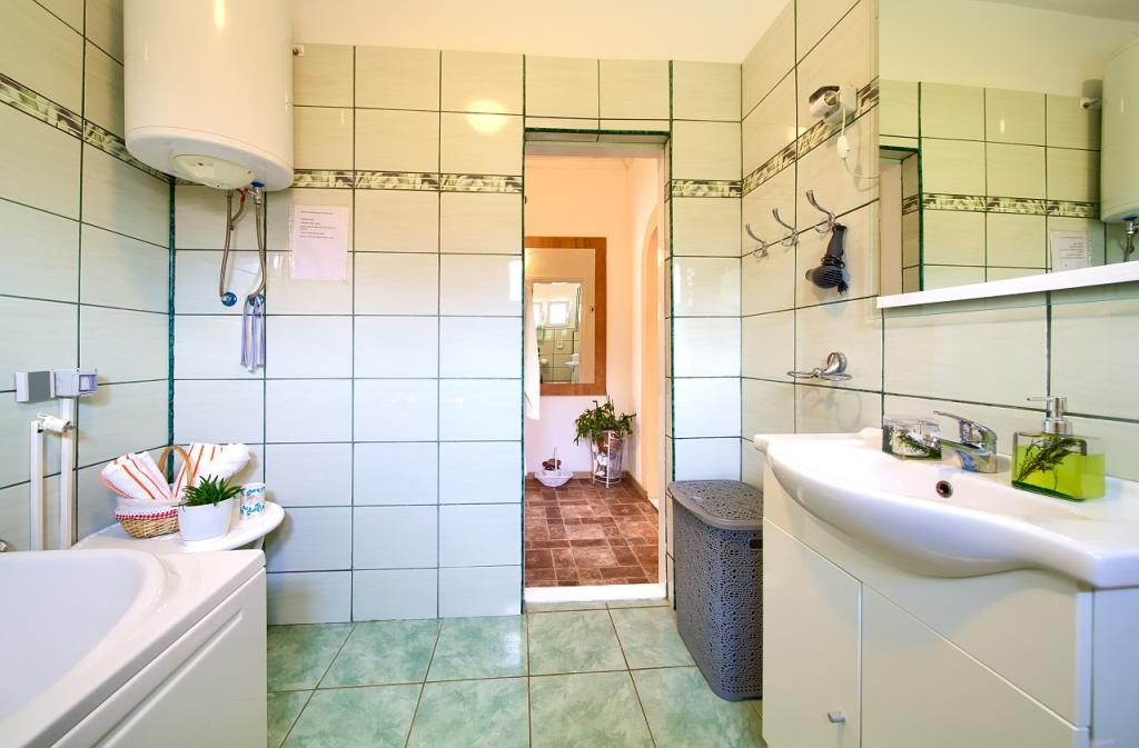 Turistična taksa je vključena v ceno.App. 2 2 se nahaja v pritličju in zavzema površino 55 m2. Sestavljen je iz hodnika na vhodu, popolnoma opremljene kuhinje, ki jo lahko uporabljate kot dnevno sobo, spalnico in kopalnico. V spalnici je zakonska postelja in dodatno ležišče. Kavč v kuhinji / dnevnem prostoru se lahko uporablja tudi kot dodatno ležišče za dve osebi. Prostorna kopalnica je opremljena s prho in pralnim strojem. App. 2 1 se nahaja v pritličju hiše z ločenim vhodom, ki sestoji iz kuhinje s troposteljno sobo z dnevno sobo, v kateri je kavč, ki se uporablja kot dodatno ležišče, ter kopalnice. Gostom je na razpolago žar z žarom, kolesa, zimsko vrtno pohištvo, brezplačen internet, zasebno parkirišče, pijačo dobrodošlice.