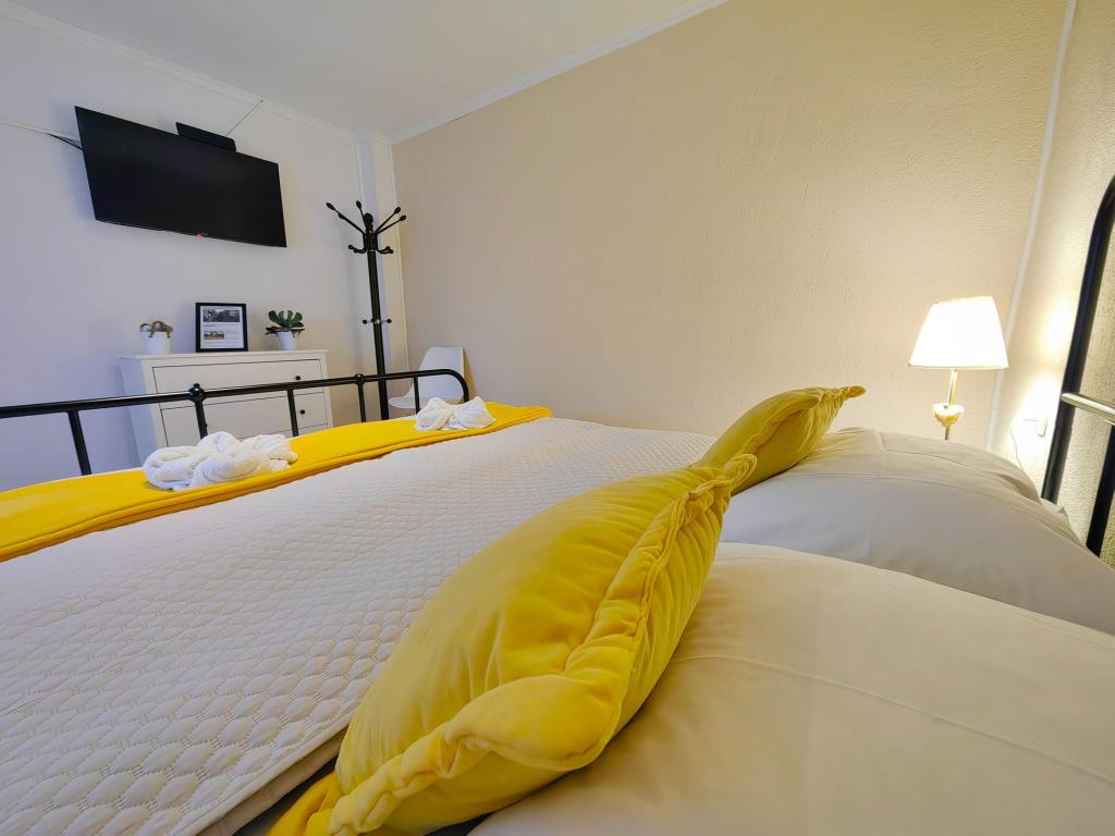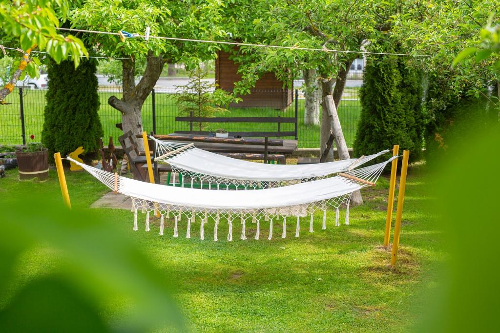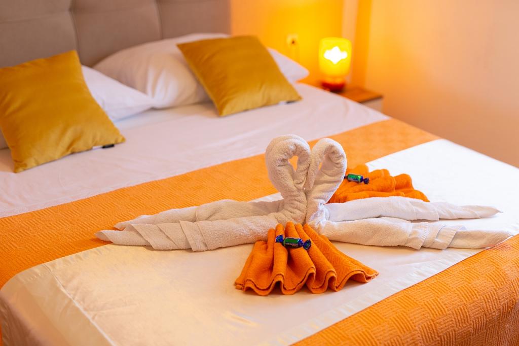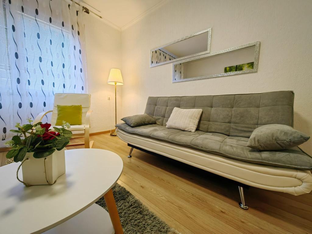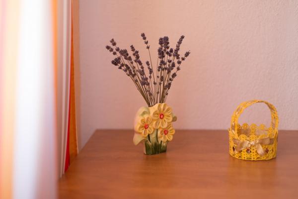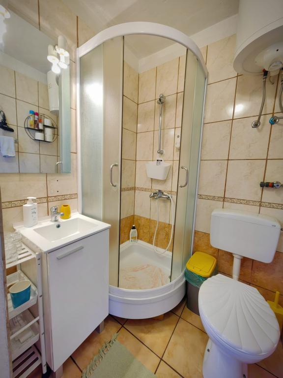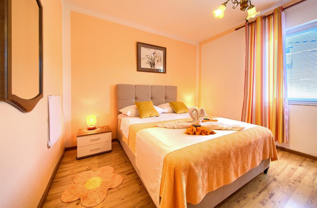 Turistična taksa je vključena v ceno.App. 2 2 se nahaja v pritličju in zavzema površino 55 m2. Sestavljen je iz hodnika na vhodu, popolnoma opremljene kuhinje, ki jo lahko uporabljate kot dnevno sobo, spalnico in kopalnico. V spalnici je zakonska postelja in dodatno ležišče. Kavč v kuhinji / dnevnem prostoru se lahko uporablja tudi kot dodatno ležišče za dve osebi. Prostorna kopalnica je opremljena s prho in pralnim strojem. App. 2 1 se nahaja v pritličju hiše z ločenim vhodom, ki sestoji iz kuhinje s troposteljno sobo z dnevno sobo, v kateri je kavč, ki se uporablja kot dodatno ležišče, ter kopalnice. Gostom je na razpolago žar z žarom, kolesa, zimsko vrtno pohištvo, brezplačen internet, zasebno parkirišče, pijačo dobrodošlice.
