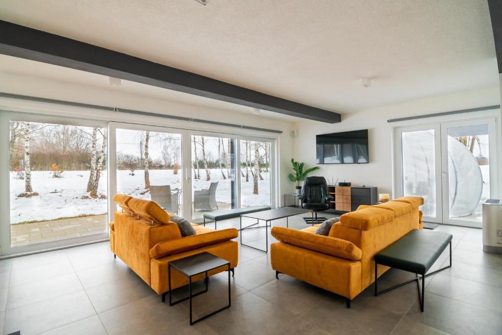 Luksuzna počitniška hiša Greenfields se nahaja v neokrnjeni naravi, 200 m od reke Like, 400 m od reke Otešice in le 4,5 km od centra Gospića. Velika terasa s pogledom na Velebit ima masažno kad za 5 oseb, kompletno vrtno pohištvo, žar in zunanji kamin. Manjša terasa z vrtno garnituro gleda na vrt. Hiša ima dve spalnici, vsaka s svojo kopalnico, dodatno stranišče, posteljnino, brisače, halje, copate in kozmetiko, tri TV z ravnim zaslonom s satelitskimi programi, IPTV, Netflix, brezplačen WiFi in prostorno dnevno sobo s kaminom. Jedilnica in kuhinja sta popolnoma opremljeni z vsemi potrebnimi gospodinjskimi aparati (pomivalni stroj, mikrovalovna pečica, pečica, kavni avtomati...). Hiša ima pralni in sušilni stroj ter likalnik in likalno desko.