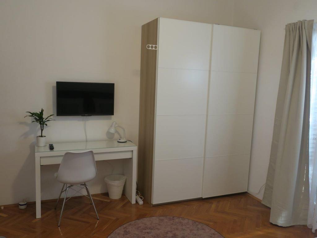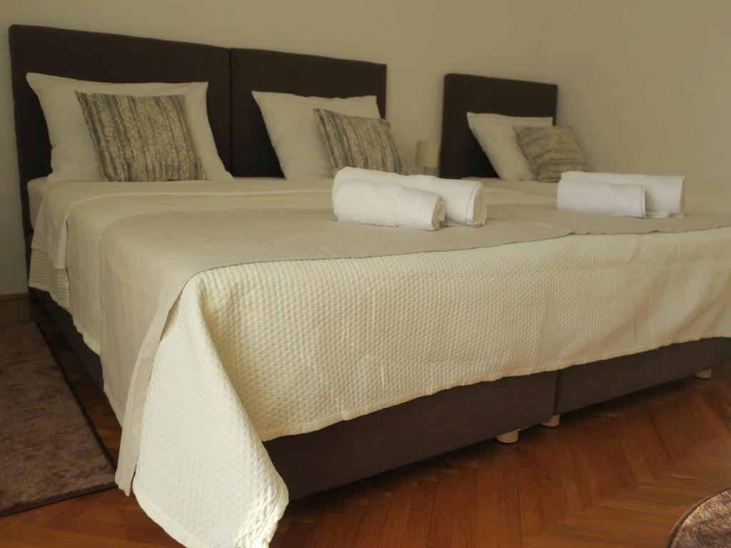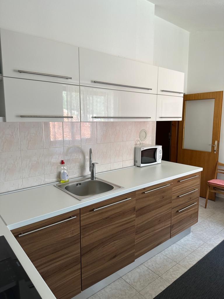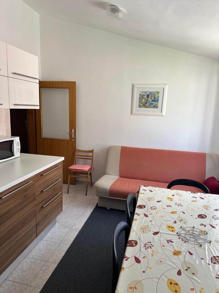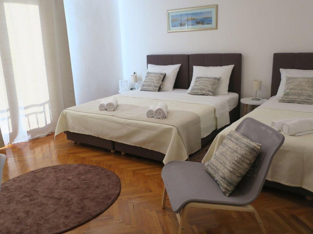 Apartma 100 m2 za 8 1 oseb. Apartma ima tri ločene spalnice (eno dvoposteljno in dve troposteljni), dve kopalnici, kuhinjo z jedilnico in dva balkona s čudovitim pogledom na morje in okolico. Vse sobe imajo klimatsko napravo. Gostje lahko za obedovanje uporabljajo tudi žar z mizo in klopmi. Parkirišče za goste je brezplačno.