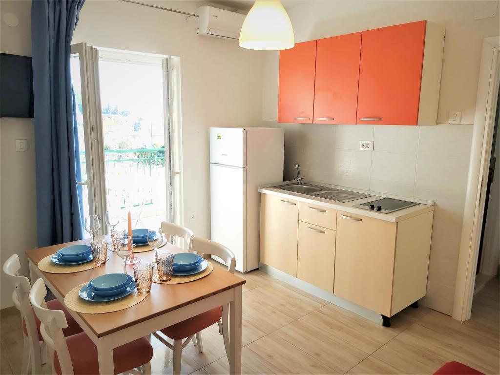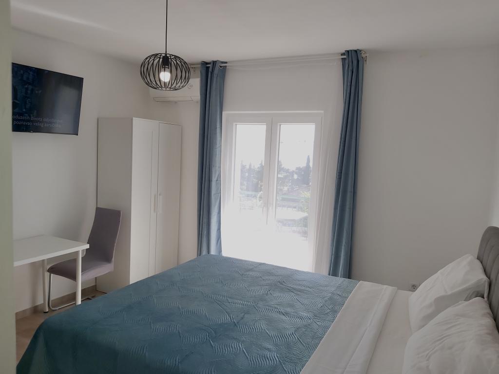 Bivali smo v apartmaju Ariana v drugem nadstropju. Je precej prostoren in opremljen z vsem, kar potrebujete, tudi s pralnim strojem. Obe sobi sta klimatizirani, kar nam je omogočilo zasebnost, saj nam ni bilo treba imeti odprtih vrat sobe. Balkon ima čudovit pogled na morje in gore, je dovolj velik, da lahko na njem večerjate, obrnjen je na mirno stran, kjer ne vozijo avtomobili. Parkiranje je varno na dvorišču hiše. Z veseljem pridemo še enkrat.