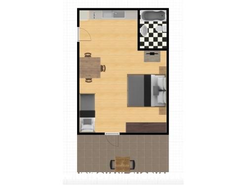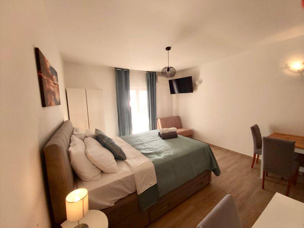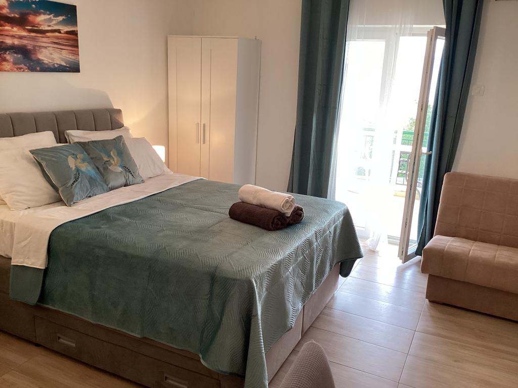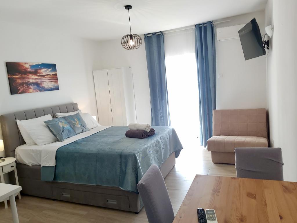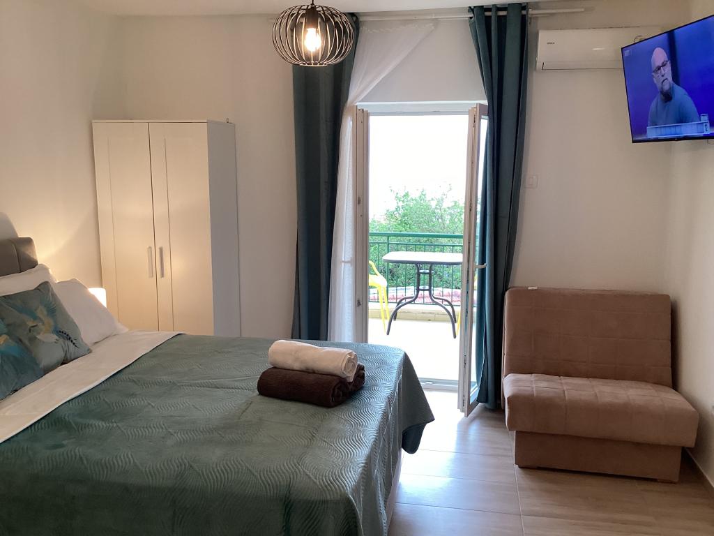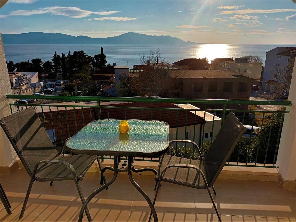 Lep apartma za dva, razgledi za spomin. Balkon, kjer smo preživeli čudovite trenutke ob opazovanju sončnega zahoda na čudovitem Jadranskem morju. Gostitelji so prijazni in ustrežljivi, niso vsiljivi, kar je lepo.