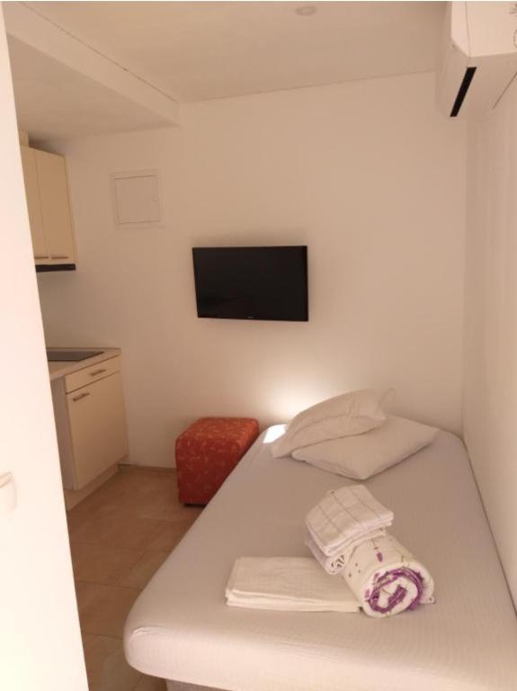 Apartmaji Kolumbo Uživajte v bivanju v apartmajih Kolumbo, ki se nahajajo na idealni lokaciji, le minuto hoje od čudovite prodnate plaže, glavnega trga, picerij in kavarn. Objekt ponuja tri namestitvene enote. Vse enote so enako opremljene in vključujejo: klimatsko napravo in brezplačen brezžični internet. Satelitsko televizijo. Zasebno kopalnico. Opremljeno kuhinjo s kuhalno ploščo, mikrovalovno pečico, grelnikom vode in hladilnikom. Razporeditev namestitvenih enot: Pritličje: Dva apartmaja z enostavnim dostopom. Prvo nadstropje: Apartma s teraso in pogledom na morje. Parkirišče je zagotovljeno za vse goste. Ekskluzivna ugodnost v naši restavraciji: Kot naši gostje prejmete 10 % popust na kosilo in večerjo v naši družinski restavraciji Marina Restaurant. Uživajte v svežih lokalnih specialitetah po ugodnejši ceni.