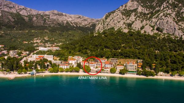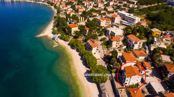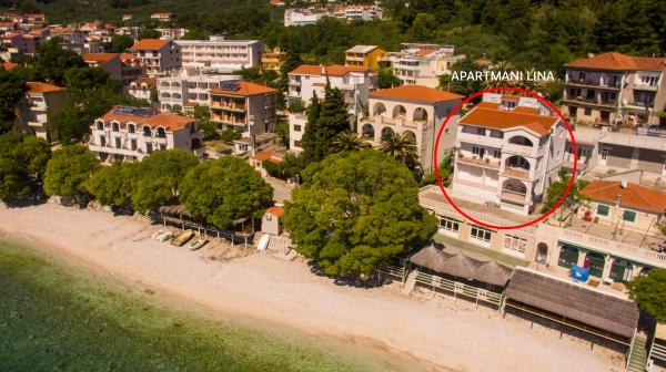 Lina Apartmaji se nahajajo tik ob plaži, na vzhodnem delu Gradca. Apartmaji se nahajajo na tretjem in zadnjem nadstropju hiše, kjer se ponuja čudovit pogled na morje in otoke.