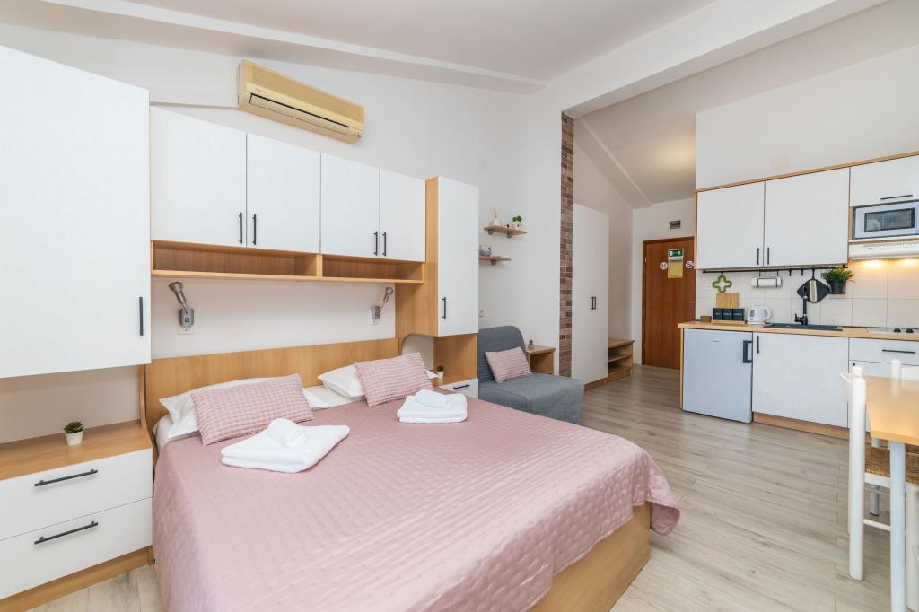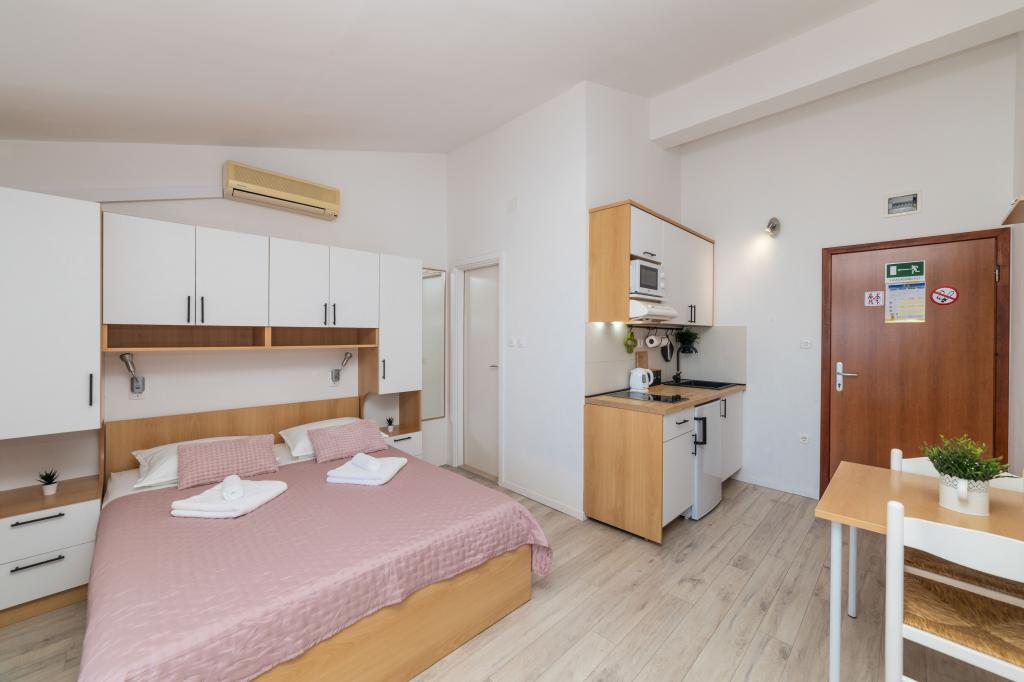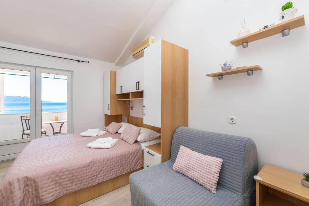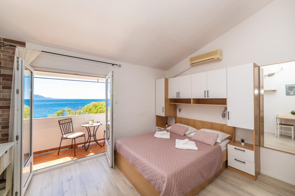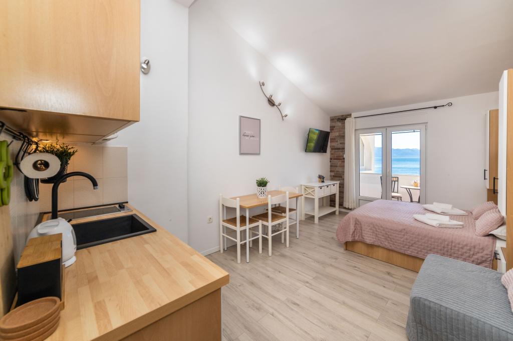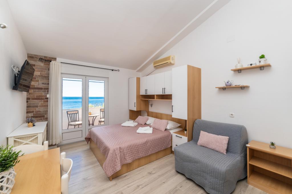 Z bivanjem v garsonjeri smo zelo zadovoljni. Apartma je nov, lepo okrašen in brezhibno čist. Lokacija je odlična. Apartma ima zaseben balkon s čudovitim pogledom na morje. Zagotovljeno nam je bilo brezplačno parkiranje. Lastnik je zelo prijazen. Naša priporočila za te apartmaje.