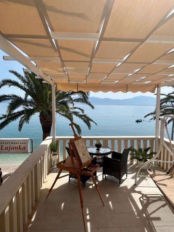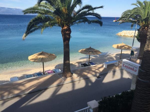 Popolnoma opremljeni apartmaji in studio v samem središču Gradca, ki se nahajajo v prvi vrsti do morja. Plaža, trgovina, restavracija in bankomat so oddaljeni le 3 metre. Čudovit razgled, naravna senca palm in šumenje morja zagotavljajo edinstveno doživetje Jadrana. Prijava v apartma na dan rezervacije je po 15. uri, odjava na dan odhoda pa do 9. ure. Cena vključuje turistično takso, parkirišče, ki je 100 m od hiše, klimatsko napravo (10 ur na dan) in brezžični dostop do interneta. Ponudbo apartmajev lahko uporabljajo le osebe, registrirane kot gostje Apartmajev Lujanka, morebitni obiski pa so možni le z dovoljenjem gostitelja. Upoštevanje hišnega reda prispeva k prijetnemu bivanju vseh gostov, v primeru neupoštevanja hišnega reda pa ima gostitelj pravico odpovedati nadaljnje opravljanje storitev gostu. Z dolžnim spoštovanjem poudarjamo, da hišni ljubljenčki niso dovoljeni, ker si ne moremo privoščiti optimalnih pogojev. Cena namestitve do 3 noči je 30 % višja.