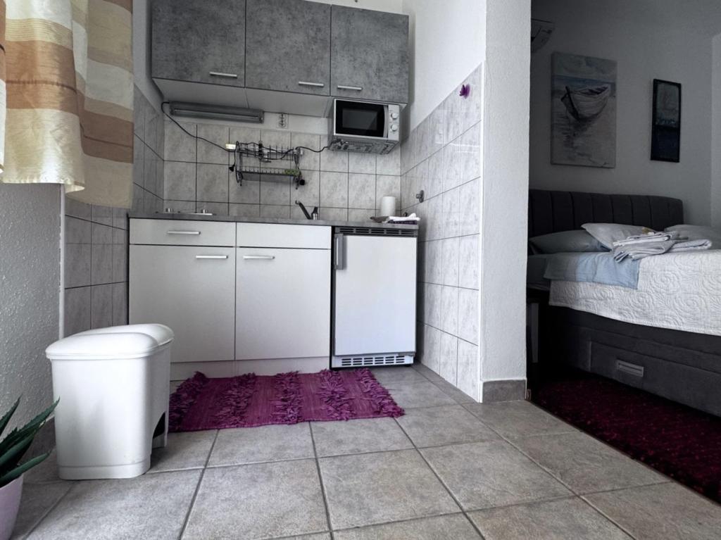 Iskreno priporočam to mesto za družine z otroki, pare ali starejše ljudi, apartma je izpolnil vsa pričakovanja, čiste, udobne postelje, pralni stroj, popolnoma opremljena kuhinja s 4 gorilniki, klimatska naprava samo 10 ur na dan, vendar dovolj, pralni stroj, opekač kruha, velik hladilnik, miren prostor in čudovit razgled, eksotična lokacija stavbe ob čudovitih palmah, bližina morja in plaže, ki je bila čista in ni bila prepolna - bilo je pravo razodetje, ležalniki in dežniki vključeni v ceno bivanja so res redki. Zraven je Sudenac in lokal s kebabom in krompirčkom, ko greste iz stavbe, so povsod ob morju in promenadi lokali, zraven je tudi pekarna, lastnika Leo in Anita pa skrbita, da je za vse dobro. gostov. Tudi ko smo bili na celodnevnem izletu, so nam pred nevihto slekli perilo, da ni bilo mokro, kar je bilo zelo lepo.Priporočam ta kraj vsem, ki želite imeti morje na dosegu roke, dobra cena in ni velike gneče. Velik plus je tudi ravna površina za sprehode z vozičkom in otroki