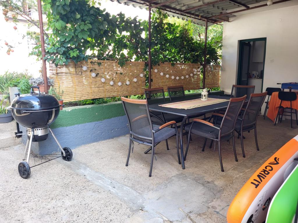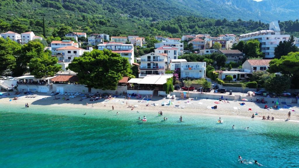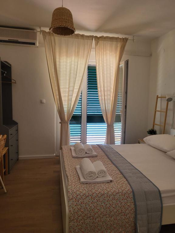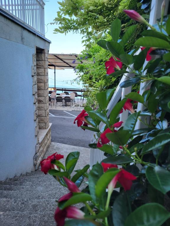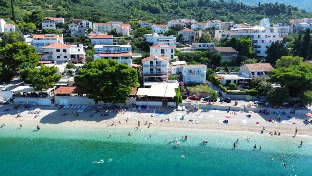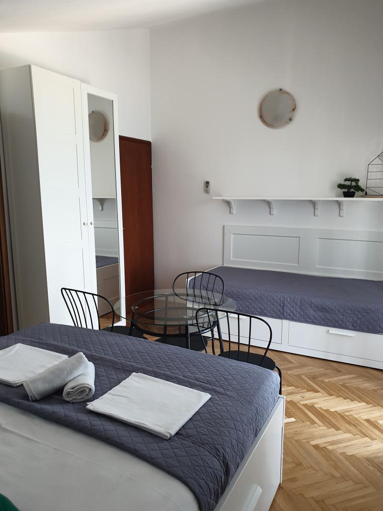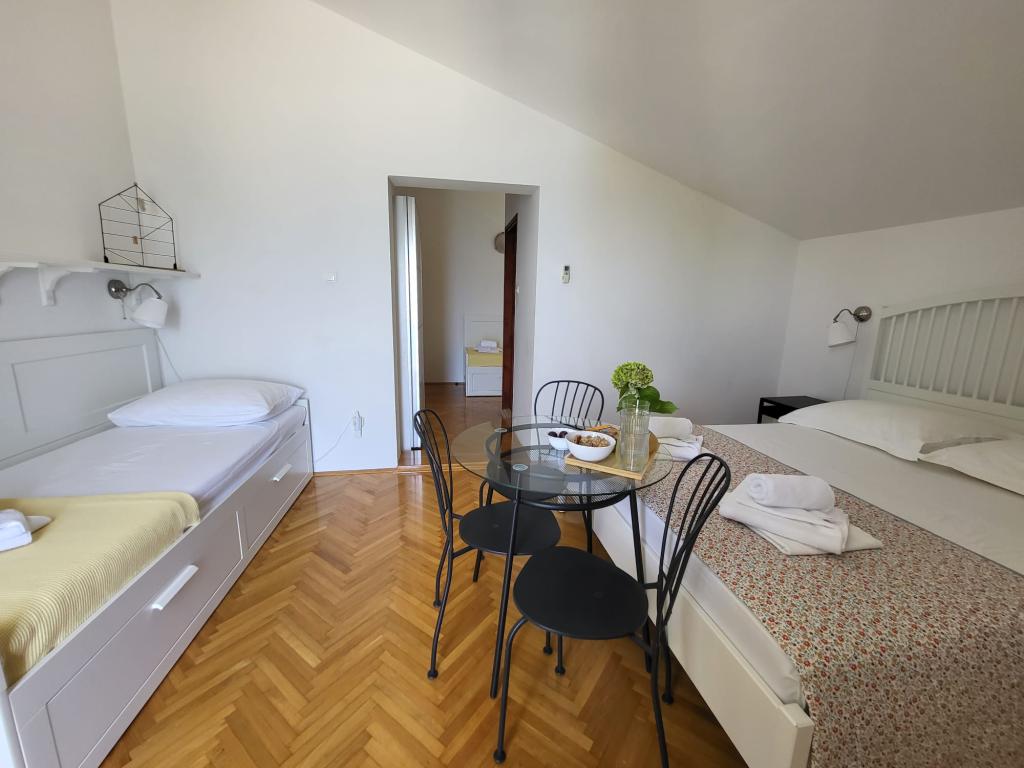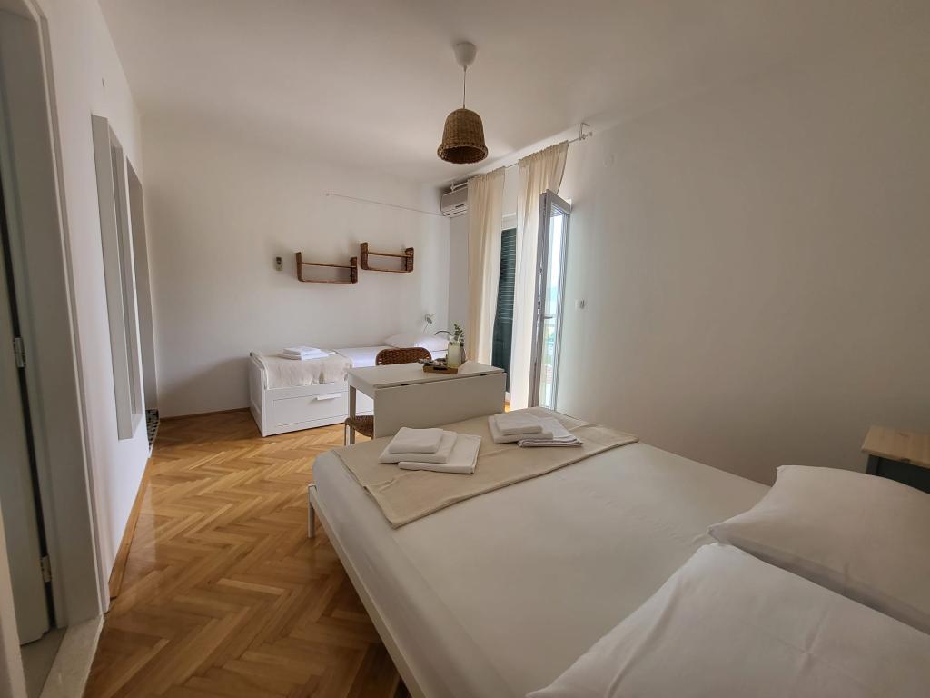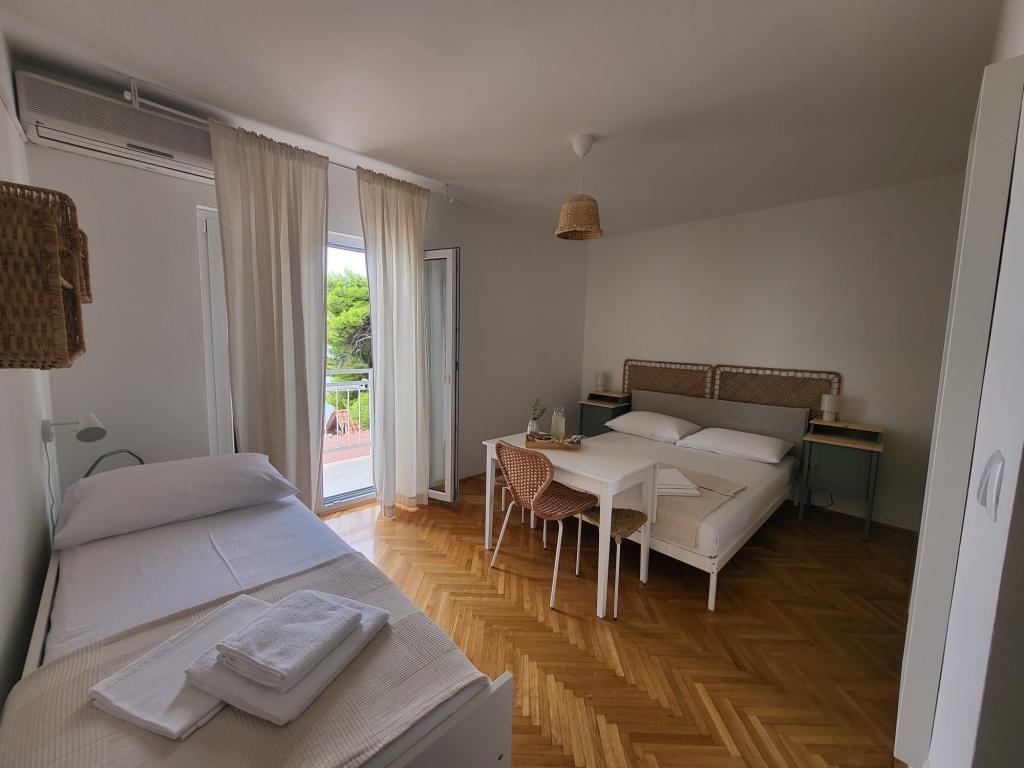 Naša družinska hiša se nahaja v prvi vrsti ob morju, tik ob čudoviti plaži z naravno senco, idealni za brezskrbne počitnice. Hiša se nahaja v mirnem delu Gradca, idealnem za družine z otroki in pare, ki iščejo sprostitev, mir in pristno mediteransko vzdušje. Za naše goste ponujamo 6 popolnoma na novo opremljenih namestitvenih enot: - 3 moderno opremljene studio apartmaje, vsak s svojim balkonom - 3 sobe z lastnimi kopalnicami, prav tako z lastnim balkonom in skupno moderno in popolnoma opremljeno kuhinjo Vse enote so na novo opremljene, svetle, prijetne in zasnovane s posebnim poudarkom na udobju in detajlih. V neposredni bližini hiše so kavarne, restavracije, pekarna in trgovina, do samega središča mesta pa se lahko sprehodite v 7-8 minutah.