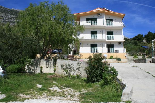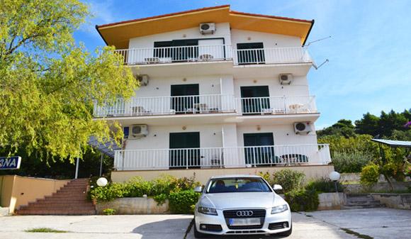 Vila Slavena se nahaja v mirnem turističnem delu Gradac, 5 minut hoje do plaže, centra, restavracij in drugih objektov, potrebnih za aktivne poletne počitnice. . Hiša je sestavljena iz 7 studio apartmajev, od tega 1 dvojna, 4 troposteljna, 2 štiriposteljna in na vrhu hiše je 1 veliko stanovanje za 6-10 oseb s 3 ločenima spalnicama, 2 straniščema, kuhinjo in balkonom okoli apartmaja z čudovit pogled na morje. V apartmaju sta tudi pralni in pomivalni stroj. Apartmaji so popolnoma in sodobno opremljeni. Vsak apartma ima klimatsko napravo, Wi-Fi internet, TV-sat. antena. Poleg vsebine apartmaja imajo gostje na razpolago tudi dvorišče za večerje in druženje na prostem pred hišo ter uporabo kaminov, pred hišo pa zasebno parkirišče samo za goste.