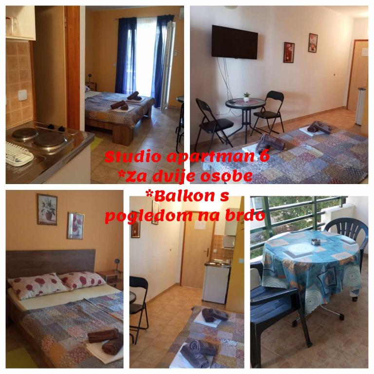 Villa Ana se nahaja v majhnem, mirnem dalmatinskem mestu Gradac. Nahajamo se tik ob plaži, ki je oddaljena manj kot minuto hoje. V bližini so vsi potrebni objekti, trgovine, restavracije, kavarne in podobno. Villa Ana obsega 6 studio apartmajev za 2, 2+1 in 3 osebe. Vsi studii imajo mini kuhinjo z mikrovalovno pečico in kuhalnikom vode, TV, klimatsko napravo, WiFi in balkon. 4 od 6 apartmajev gledajo na morje, dva pa na gore. Parkirišče je zagotovljeno pred hišo. Veselimo se vaših prihodov.