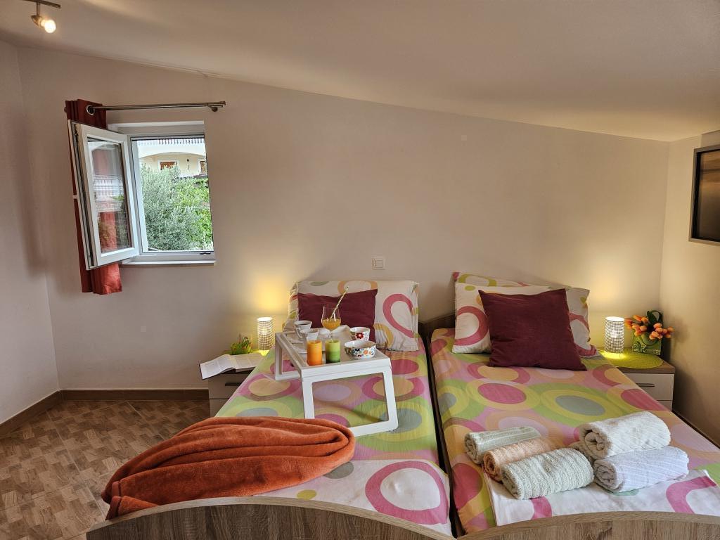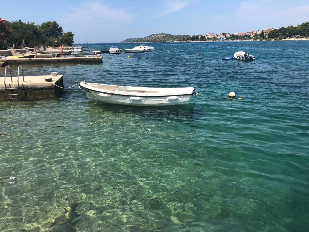 Turistična taksa nije vključena v ceno.Uporabniki apartmajev imajo na voljo pomivalni in pralni stroj. Zagotovljen je privez za čoln in prostor za prikolico ter parkirišče za avto. Te storitve so brezplačne. Uporabniki apartmajev imajo na voljo otroško posteljico, senčnike in ležalnike. Na dvorišču hiše je prostor za peko na žaru ali žaru. Apartma ima brezplačen internet (wi-fi). Zaradi oddaljenosti od glavne ceste uporabnikom apartmajev ni treba skrbeti za varnost svojih otrok. V dopoldanskih urah je možnost nakupa osnovnih živil v neposredni bližini apartmaja z avtobusom. Vsekakor priporočamo razgled na celotno otočje z vrha hriba Jelinjak, do katerega se lahko pripeljete z avtomobilom ali kolesom. V bližini sta tudi dva narodna parka: Krka in Kornati. Dobrodošli!