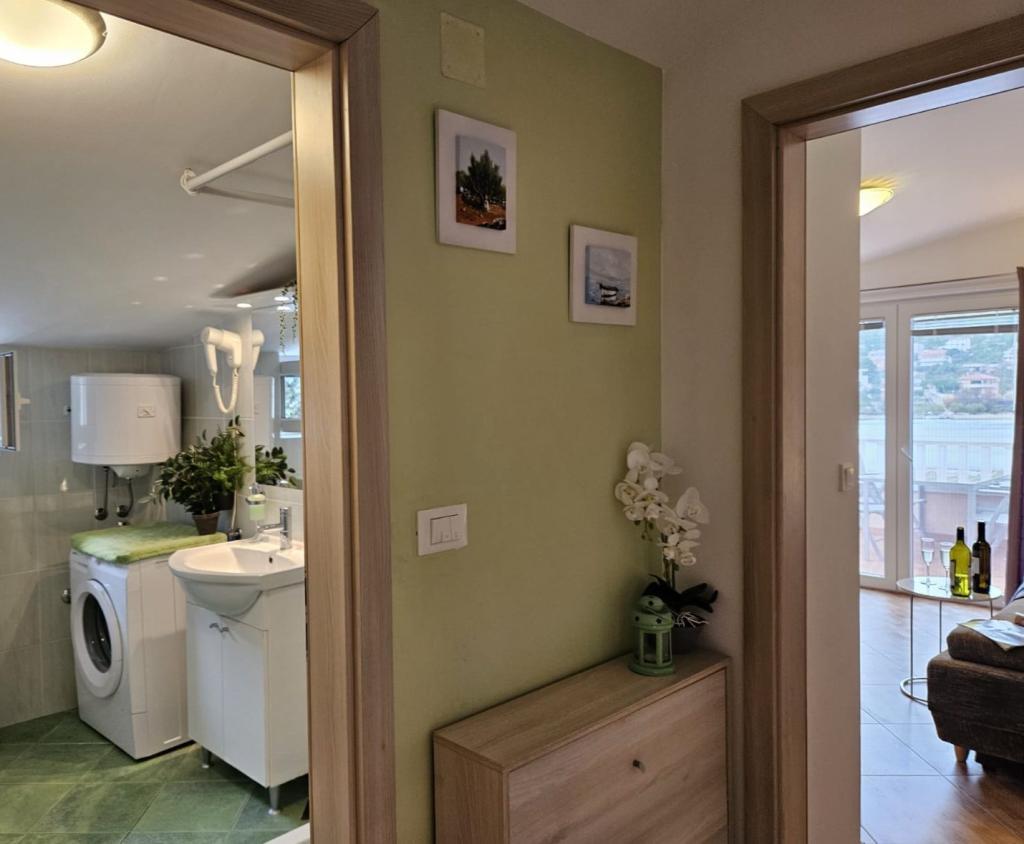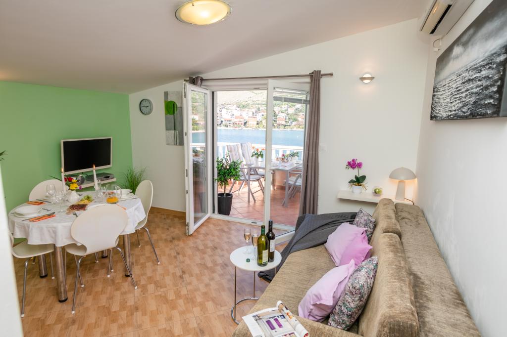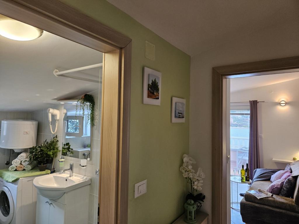 Nepremičnina se nahaja v prvi vrsti ob morju, pod hribom Jelinjak na južni strani dolgega čudovitega zaliva med naseljema Grebaštica in Šparadići. Naselji sta povezani z glavno cesto in dobro vzdrževano potjo ob morju, primerno za sprehode, tek in kolesarjenje. Nepremičnina je novozgrajena. Apartma ima teraso s pogledom na morje in naselje Grebaštica. Plaža je betonska in prodnata z mesti v senci oljk.