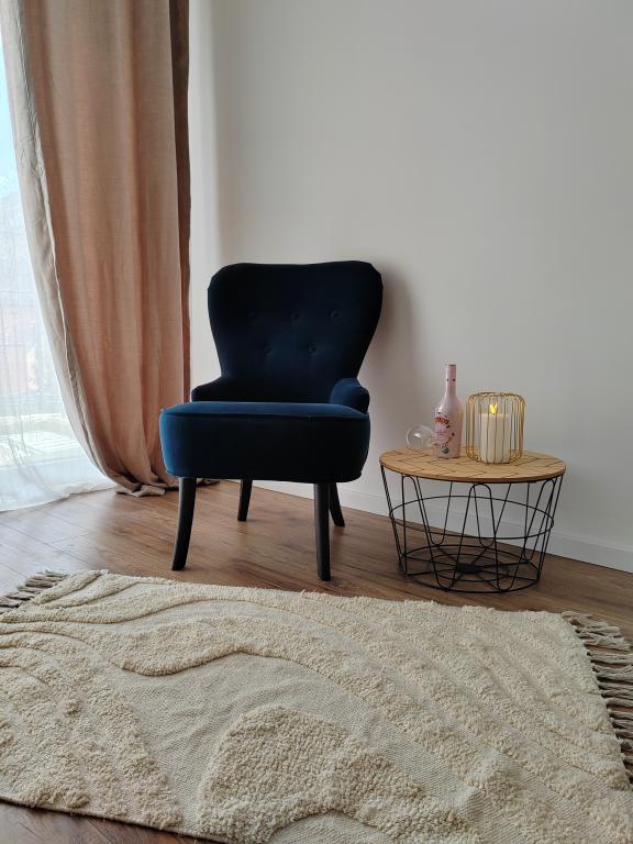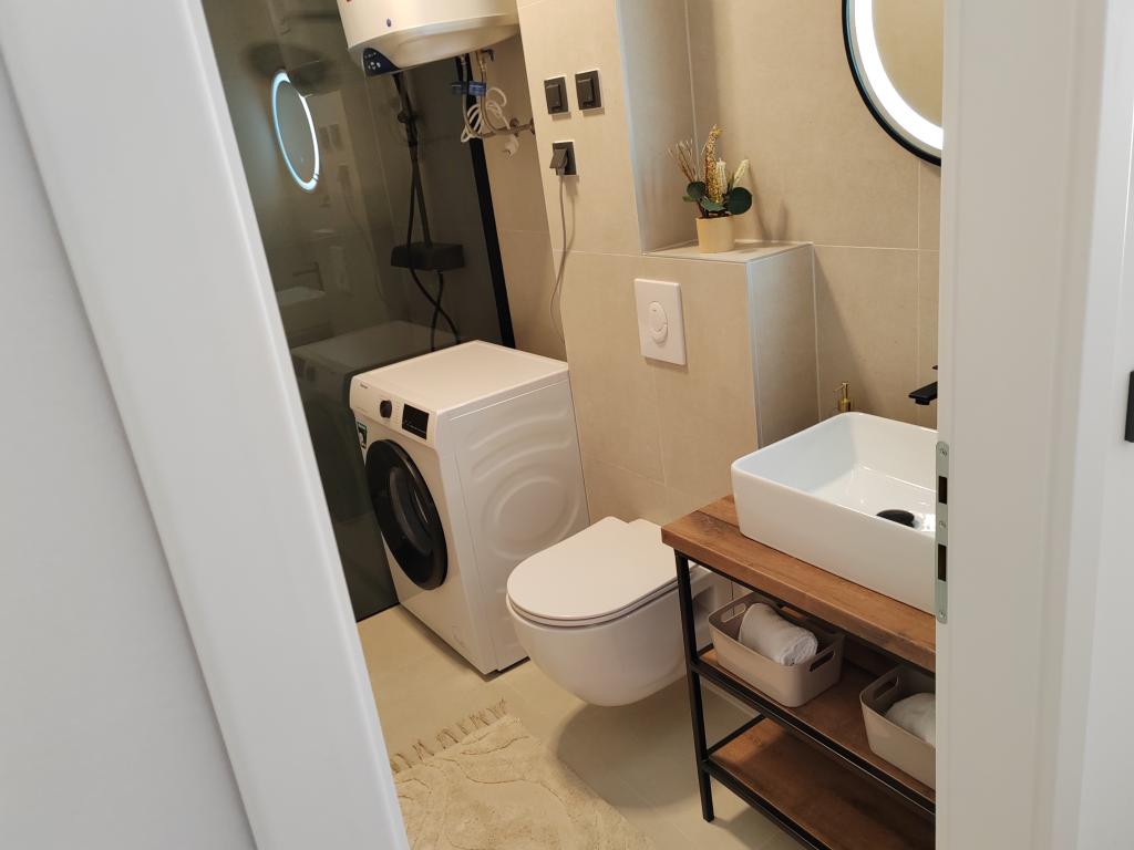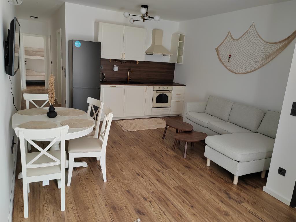 Popolnoma opremljeno stanovanje v novi stavbi le 20 m od plaže. Nahajamo se 5 minut hoje od centra. V bližini trgovin, restavracij in kavarn. Na plaži beach bar z ležalniki, naravno senco in vodni park. Stavba ima lastno parkirišče tik pred teraso.