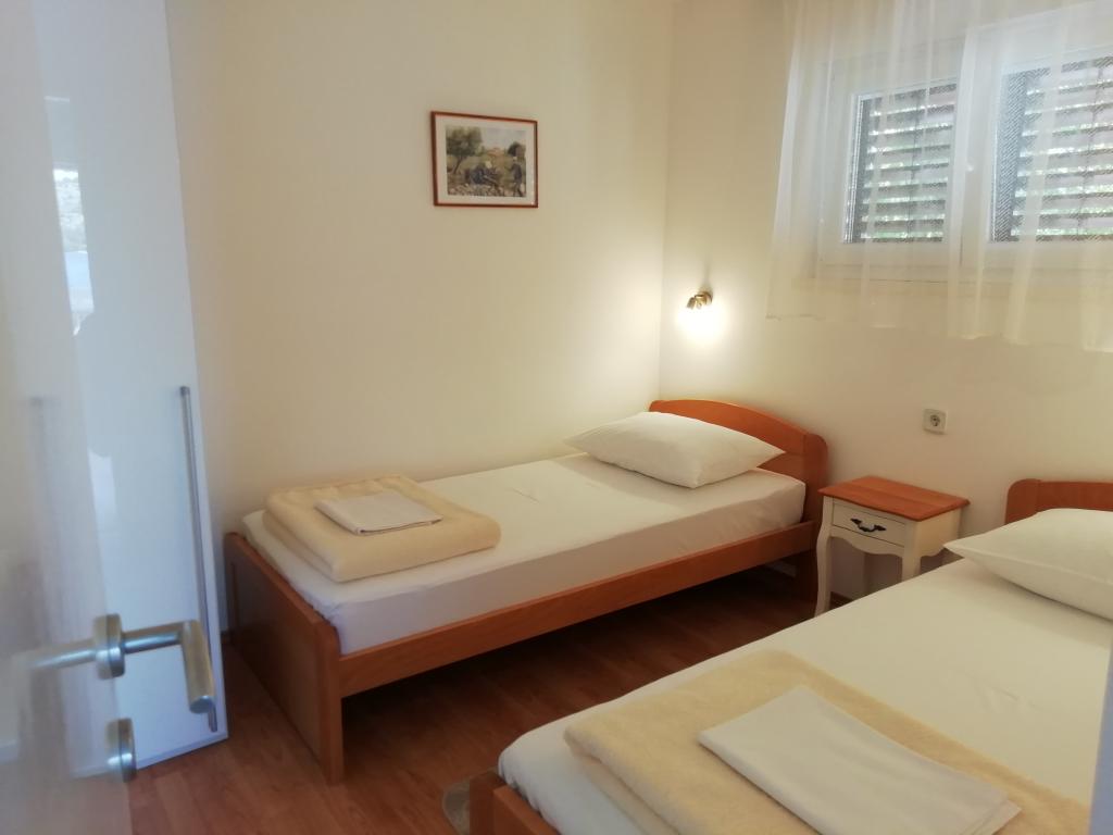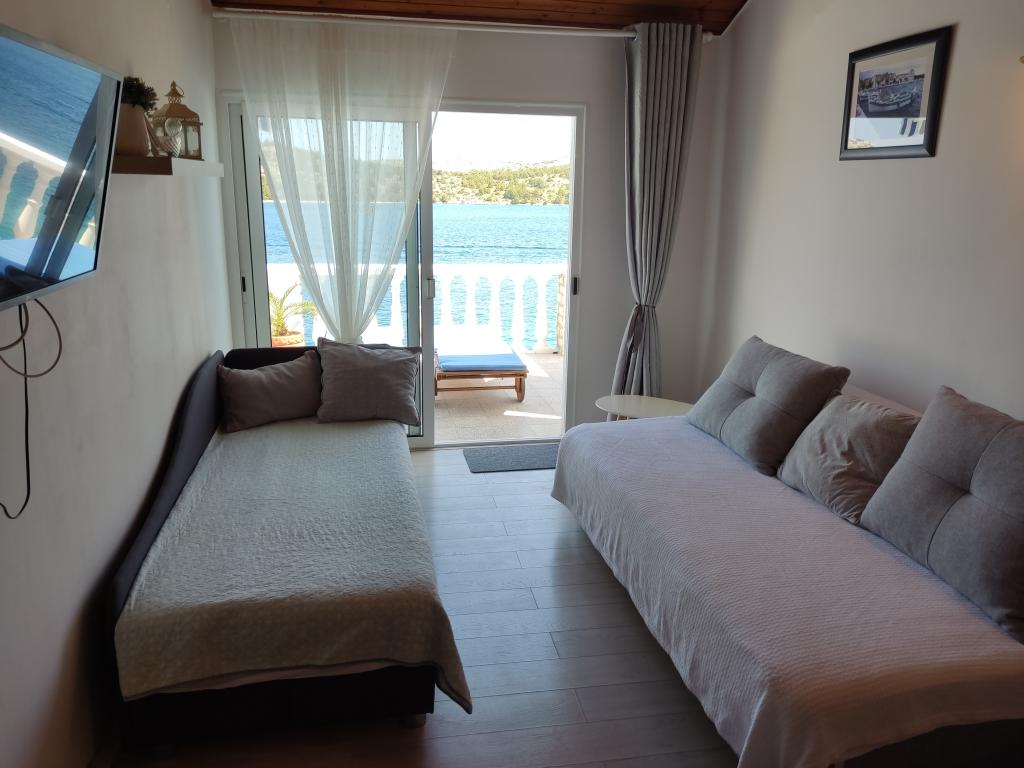 Oddamo celo hišo s tremi apartmaji, idealno za tri družine in skupine do 12 oseb. Hiša se nahaja na lepi lokaciji, 7 m od plaže v mirnem turističnem kraju Šparadići. Dva apartmaja imata prostorne terase s čudovitim pogledom na morje, spodnji apartma pa ima ograjeno dvorišče. Na voljo je tudi velika terasa nad morjem z žarom in dvema vrtnima mizama, kjer se gostje lahko skupaj namestijo v senci fige in vinske trte. Lastniki ne živijo v hiši. Vsi apartmaji imajo klimatsko napravo, brezplačno parkiranje, TV, WiFi, brezplačne ležalnike in senčnike na plaži in terasah. Možnost priveza za čolne pred hišo. Idealen kraj za vaše družinske počitnice. Dobrodošli.