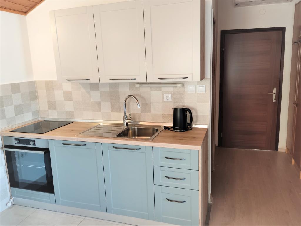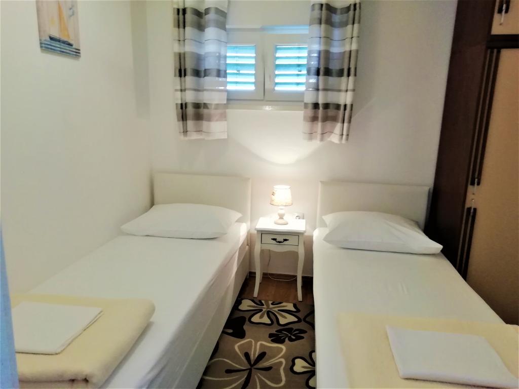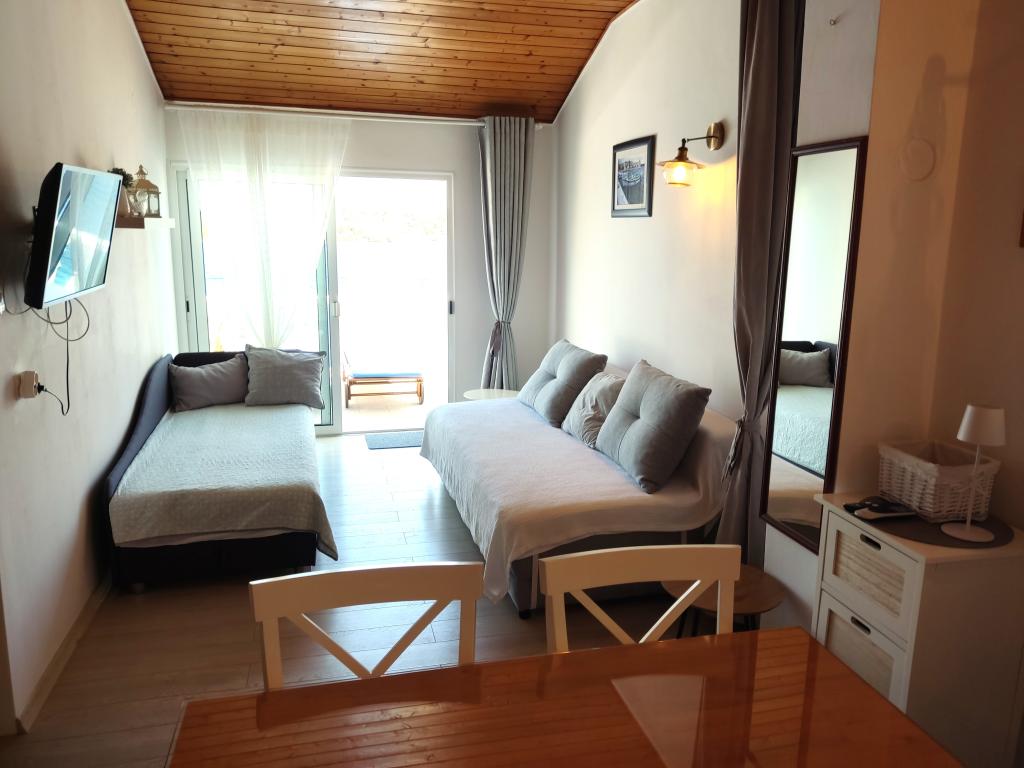 Hiša je na super lokaciji - nekaj metrov od morja. Bili smo drevesne družine - vsa hiša je bila naša. Imeli smo lastno morje, ležalnike, senčnike, veliko dvorišče in zunanjo kuhinjo - vse je bilo vključeno v ceno teh apartmajev. Vse je bilo čisto, dovolj prostora. Lastnik je bil neverjeten in zelo ustrežljiv. Pričakal nas je s hladno pijačo dobrodošlice, priporočil kraje za večerjo. Pred našim potovanjem je poslal fotografije z vodo, plažo za otroke itd., kar smo vprašali. V tem kraju ni nobene trgovine, ampak vsak dan so domačini, ki so vsako jutro prinesli kruh, sladoled in zelenjavo.