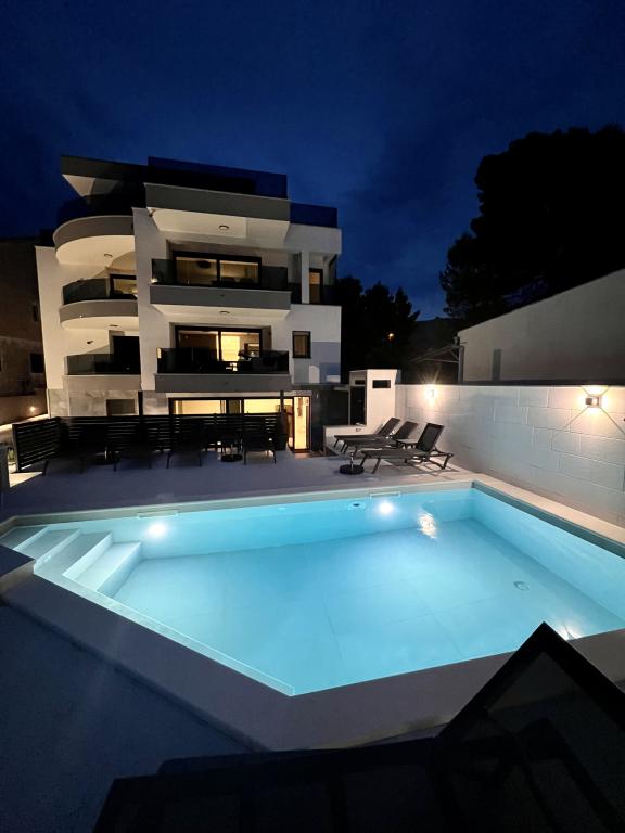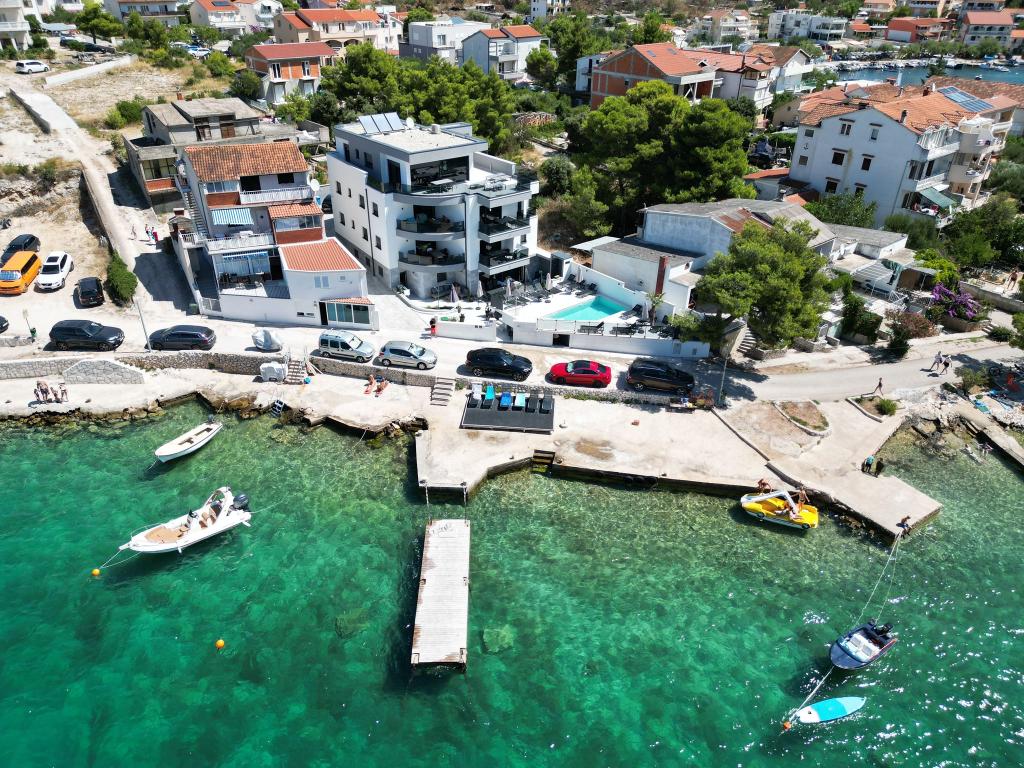 Villa White Pearl se nahaja tik ob plaži v mirnem zalivu Grebaštica, le 15 minut od zgodovinskega mesta Šibenik, ki je pod Unescovo zaščito. Vila je bila zgrajena leta 2023 in vsebuje 6 luksuznih apartmajev s skupno kapaciteto 28 ležišč. Vsak apartma je opremljen z visokokakovostnim pohištvom priznanih blagovnih znamk ter vključuje brezplačen WiFi in satelitsko televizijo. Poleg apartmajev je vsem našim gostom na voljo sezonsko ogrevan zunanji bazen s hidromasažerji, ležalniki na plaži, oprema za peko na žaru in zasebno parkirišče brez dodatnih stroškov. Balkoni apartmajev ponujajo tudi čudovit pogled na morje in bazen. Le nekaj korakov stran od nepremičnine so čudovita plaža Banovci, trgovine, restavracije, bari in druge vsebine, potrebne za popoln družinski dopust. Vsekakor vam priporočamo, da bivanje v našem apartmaju izkoristite za raziskovanje številnih znamenitosti v naši okolici in si privoščite nepozabne spomine iz dopusta.