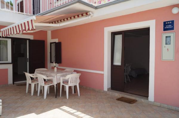 Apartmaji se nahajajo v majhnem mirnem kraju Šparadići blizu Grebaštice, zelo blizu morja, ločeno od hrupa, hrupa avtomobila. Kraj je idiličen za počitnice in se ponaša z jasnim in čistim morjem. Apartmaji imajo velike terase s pogledom na morje, varovano parkirišče, WI-FI in otroške posteljice. Plaža je oddaljena 7 metrov. Možnost priključitve na eno ladjo. Šparadići so daleč od Šibenika 16 km, Primoštena 10 km in Narodnega parka Krka 40 km. Dobrodošli.