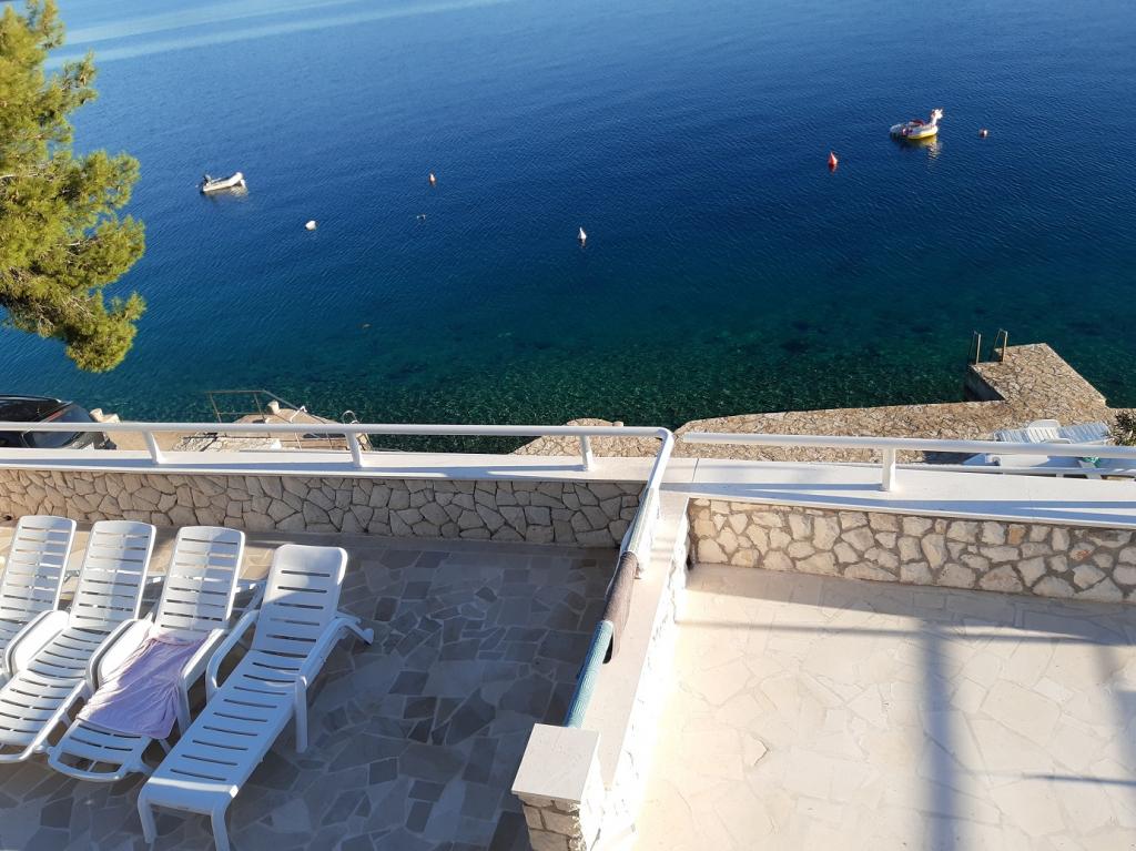 Hiša ob morju in ob morju in čudovite velike kamnite terase, kjer se gostje radi zadržujejo.