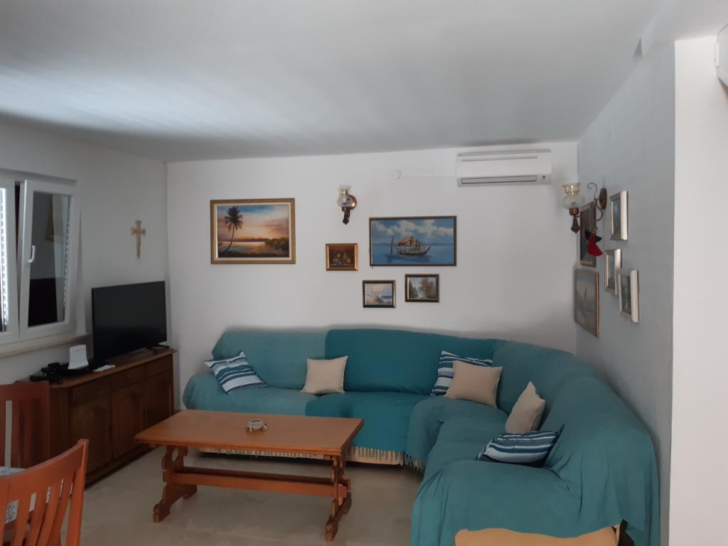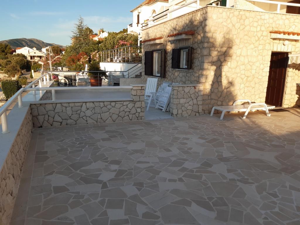 Čeprav je spodnji apartma (A4) najmanjši in v kategorizaciji ne more dobiti več zvezd, je gostom najljubši, vsi pa se čez dan zadržijo na terasi (100 kvadratnih metrov) spodnjega stanovanja. V apartmaju je TV s filmskimi in športnimi kanali, klimatska naprava, internet in pralni stroj, kuhinja, kopalnica in dve spalnici za 4 osebe. Zgornji apartma (A8) za 8 oseb s klimatsko napravo in internetom je razdeljen na dve enoti, spodnjo in zgornjo. Spodnja enota ima veliko teraso (45 kvadratnih metrov), TV s filmom in športne kanale. pralni stroj, kopalnica, kuhinja in soba z dvema ležiščema, zgornja enota pa ima tri spalnice za 6 oseb, kuhinjo in kopalnico ter velik balkon (16 kvadratnih metrov) s čudovitim pogledom na morje.