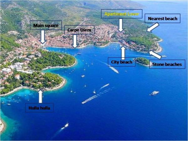 Na novo opremljeni apartmaji se nahajajo v družinski hiši v mirnem delu Hvara, 20 minut hoje od starega mesta. A1 (4 osebe) je v 1. nadstropju z veliko teraso s pogledom na morje in ponuja čudovit sončni zahod. A2 (4 osebe) je v pritličju na ograjenem dvorišču z možnostjo sedenja pred njim. Vsak apartma ima eno dnevno spalnico in raztegljivo posteljo v dnevni sobi. Parkiranje je brezplačno, kot tudi storitev WiFi. Najbližja naravna prodnata plaža je v zalivu oddaljena 200 metrov in do nje je mogoče priti peš. Druga mestna plaža, prodnata in kamnita, je 10 minut hoje. Namestitev je primerna za družinske počitnice, varna je za otroke (ograja), dobrodošla je tudi družba do 8 oseb. Do Hvara lahko pridete s katamaranom neposredno iz Splita (1 ura vožnje) ali s trajektom (2 uri vožnje) skozi staro mesto, od koder je lokalni avtobus (20 min vožnje) do središča Hvara. Najbližje letališče je v Splitu. Katamarani gredo tudi na Korčulo, Mljet in Dubrovnik.