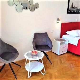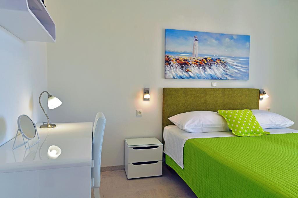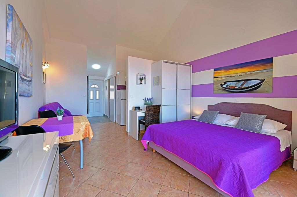 Preberite več Namestitvene enoteCena vključuje turistično takso, uporabo klime in wifi. Parkirišče se plača 7 Eur na dan na avto. Posteljnina se običajno menja enkrat tedensko, brisače pa vsake 3 dni. Prijava: od 14:00 Odjava: do 10:00 POGOJI REZERVACIJE: Za potrditev rezervacije je potrebno plačati akontacijo v višini 20% celotnega zneska preko TRR. Preostanek zneska plačate v gotovini na dan prihoda (kreditnih kartic ne sprejemamo). Bivanje krajše od 4 dni se poveča za 20% v terminu od 01.07. do 31.08.