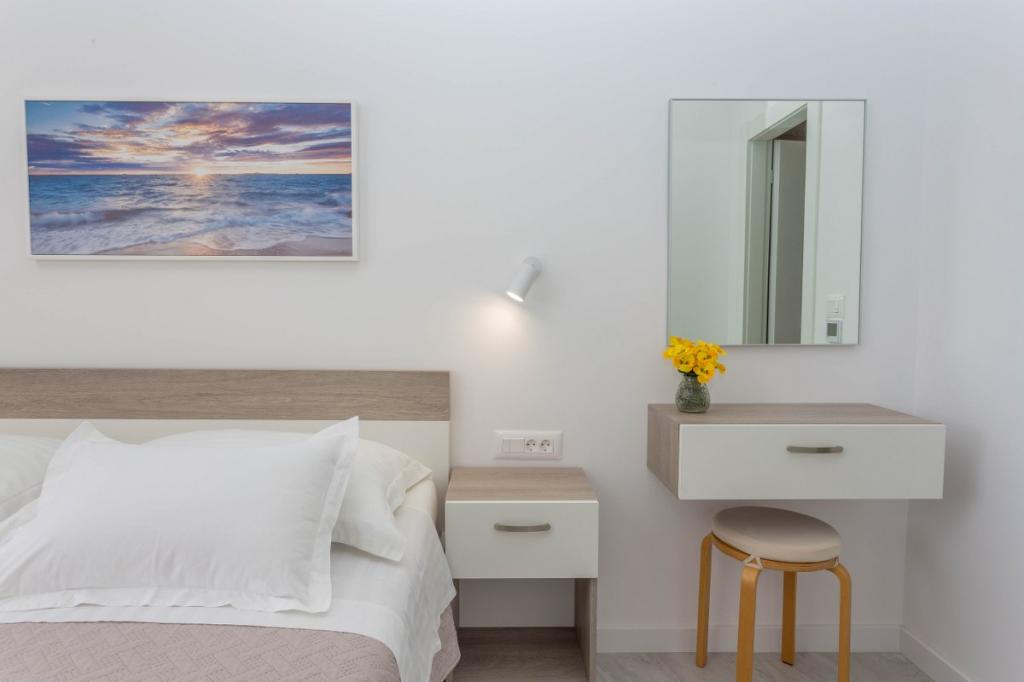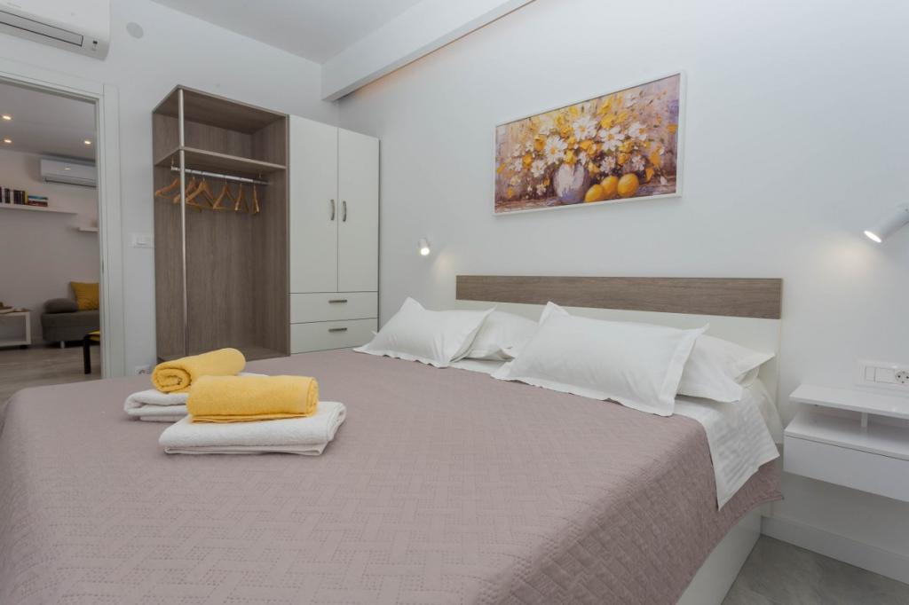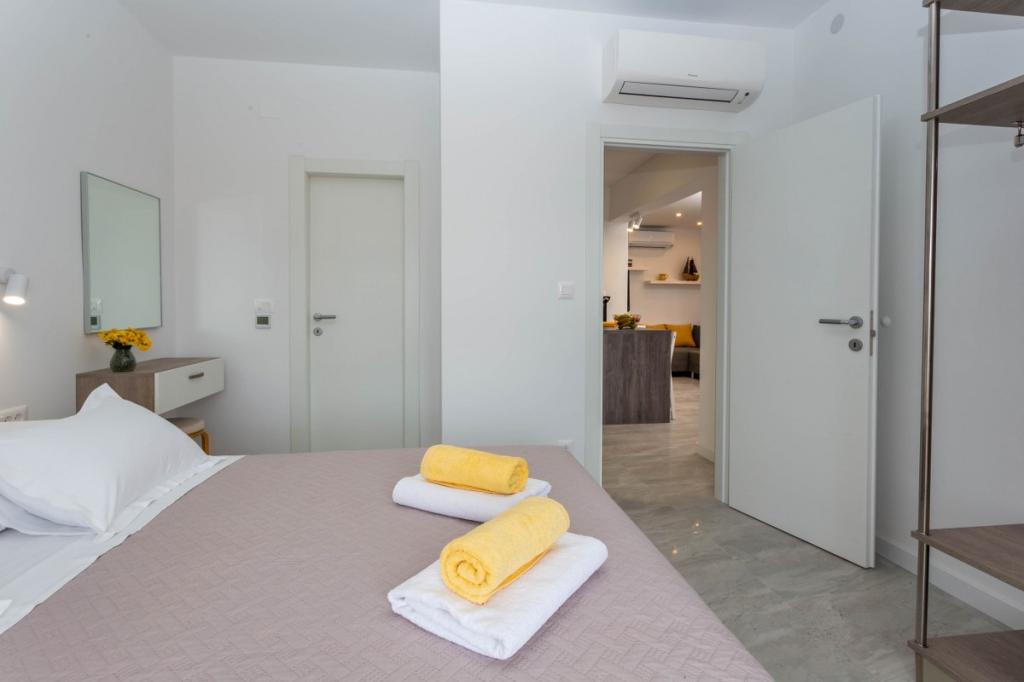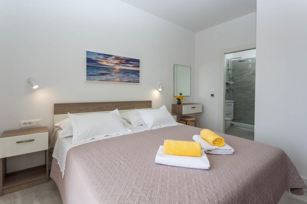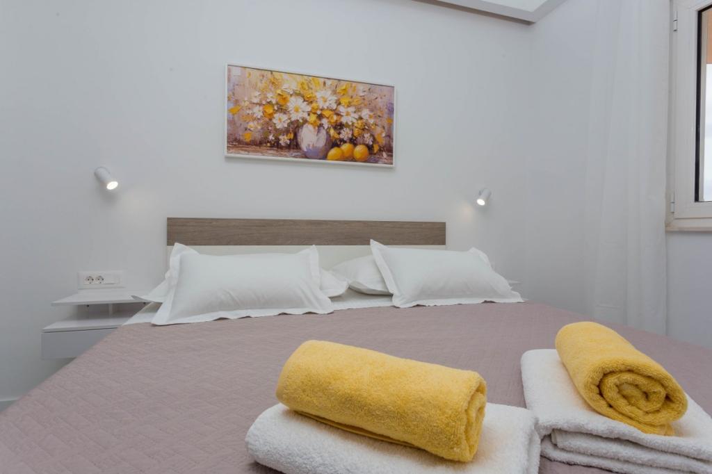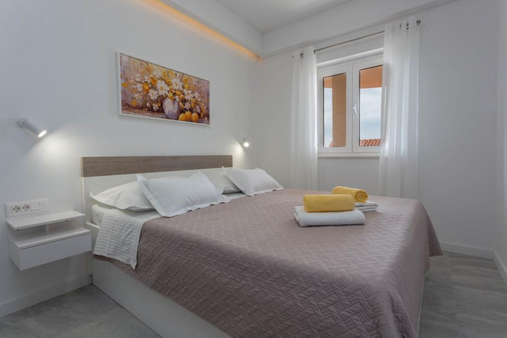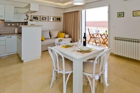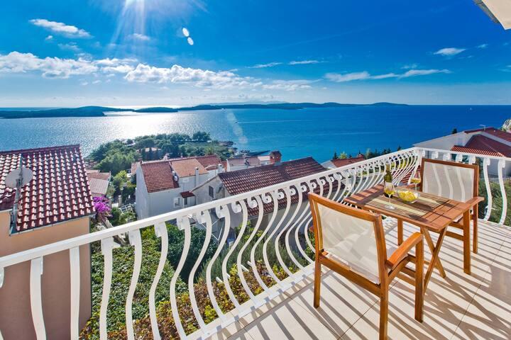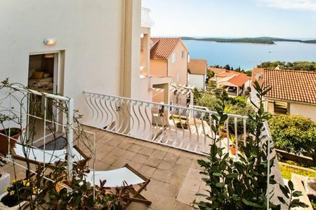 Moderni in sodobni apartmaji Dominis z neverjetnim 180-stopinjskim panoramskim razgledom, ki vam bo vzel dih. Gostom ponujamo 4 moderne apartmaje, popolnoma opremljene z vsemi potrebnimi udobji za prijeten oddih. Apartma Blue Peace s 4 zvezdicami, apartma Blue Horizon s 4 zvezdicami, apartma White s 4 zvezdicami in apartma Green s 3 zvezdicami. Apartmaji so opremljeni s pralnim ali pomivalnim strojem, satelitsko televizijo, vsi so klimatizirani in imajo hitro internetno povezavo wifi. Gostom je na voljo parkirišče za njihova vozila in žar, kjer lahko pripravite različne ribje in mesne dobrote. Uživajte v sončnih vzhodih in zahodih z naših prostornih teras v družbi svojih najdražjih, poslušajte le šumenje morja, ko pa se boste zatekli k mestnemu vrvežu, vas bo prijeten sprehod v samo 15 minutah popeljal do centra mesta. V vročih poletnih dneh poiščite osvežitev v čistem morju na plažah, ki so od naše hiše oddaljene le 5 minut hoje. DOBRODOŠLI!!!