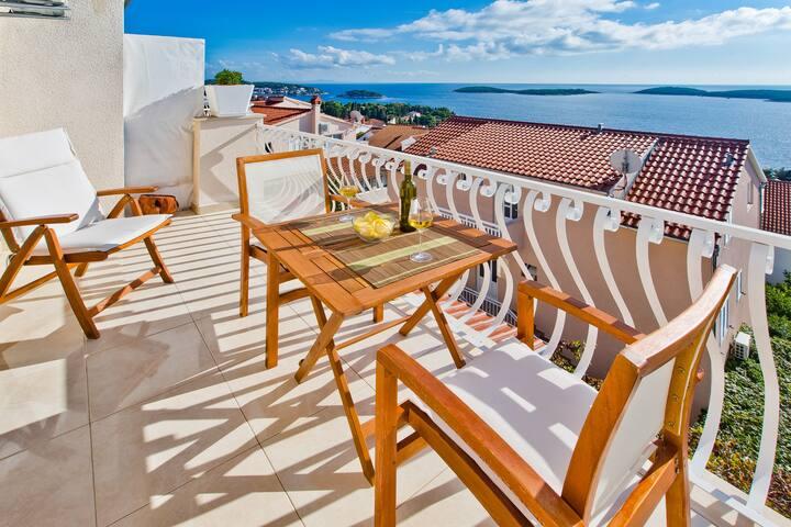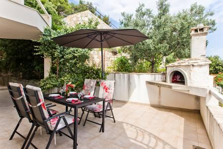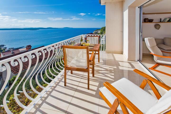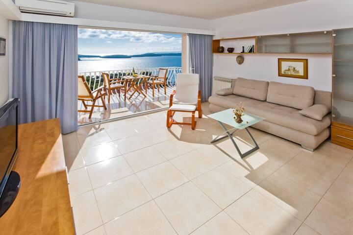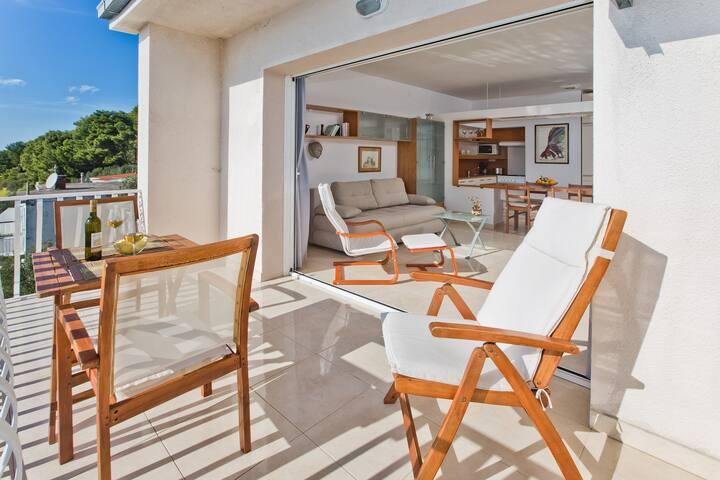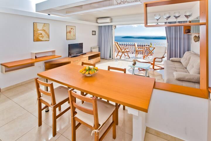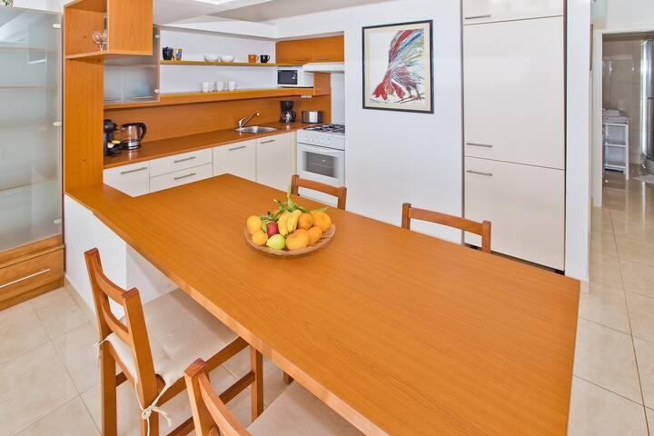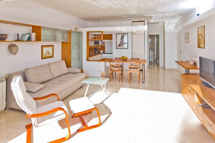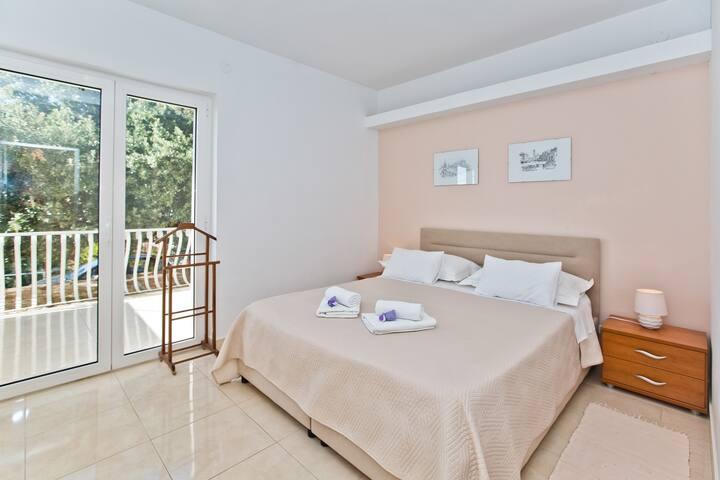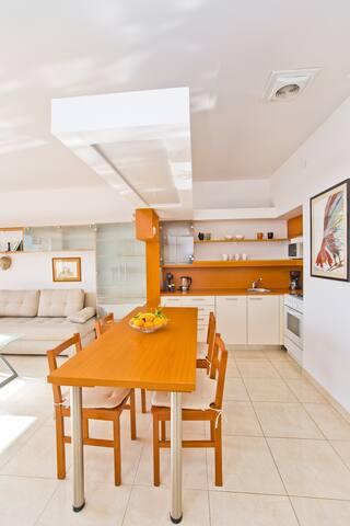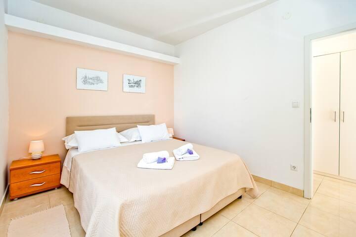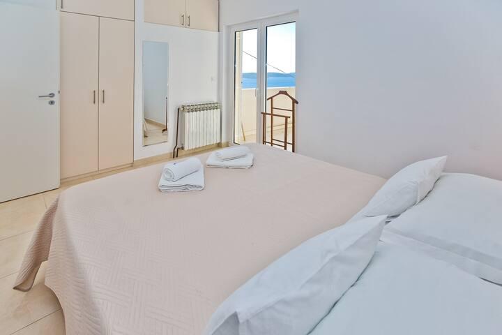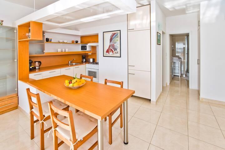 Lepo prostorno stanovanje, dobro opremljeno, velika terasa z žarom in čudovitim pogledom na morje. Mirna soseska, gostiteljica pa zelo prijazna in vedno na usluzi.