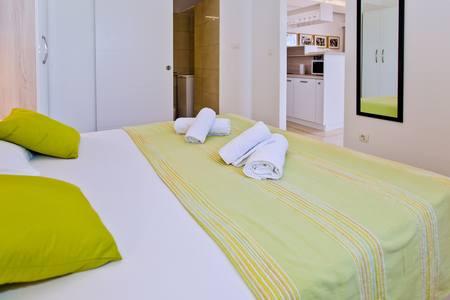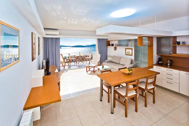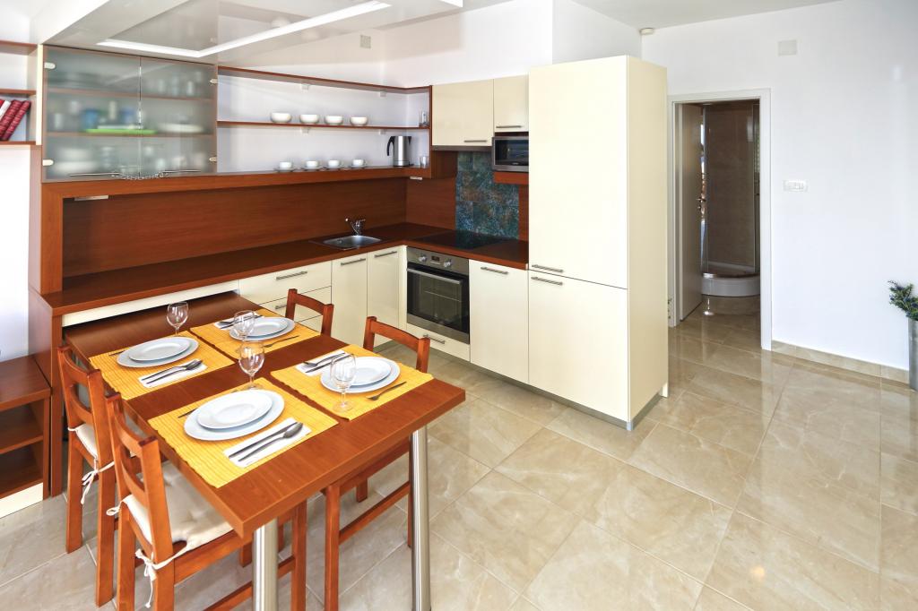 V Tatjanovem stanovanju smo ostali sedem dni in smo ga imeli radi !! Velika zasebna terasa pred apartmajem z žarom na žaru, ki smo ga veliko uporabljali, je bila odlična luč naših počitnic (neverjeten pogled na morje in otoke!) Sam apartma je kot nalašč za štiri osebe (in sva bila dva para), z vsakim možen aparat, ki bi si ga lahko želeli (tudi pomivalni stroj), dve kopalnici pa tudi. Tatajana je zelo ljubka gospa, predana svojemu poslu, zelo odzivna na vsa vprašanja, ki smo jih imeli vedno na voljo. Videli smo, da je zelo pozorna na podrobnosti in to lahko vidimo po notranji zasnovi stanovanja in majhnih dotikih, ki nam jih je pustila. Lahko ji priporočamo njeno stanovanje in zagotovo se vračamo naslednje poletje !!