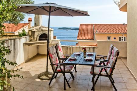 Preživeli smo 3 tedne v apartmaju A2 ID:37213. Najina hči je bila v studiu s svojim fantom. Zajtrkovali smo in večerjali v našem apartmaju vsi štirje. In bilo je neverjetno. Vsak dan nova pokrajina, vsak dan novo plovilo ene od organizacij za križarjenje v zalivu. Na Hrvaškem smo videli veliko zelo lepih lokacij, vendar pogled iz tega apartmaja premaga vse. S seboj smo pripeljali svoj čoln. Andrea (Tatjanina hči) je bila v veliko pomoč. Povezala nas je z Nicolo, ki je nekakšen upravitelj zaliva Sirena, ki je uredil privez za našo barko. Andrea in njena mama sta bili zelo prijazni in ustrežljivi, tako kot njuna pomoč, Sabira. Odlična ekipa, zaradi katere se človek zlahka počuti dobrodošlega in domačega. Apartma je bil čudovit, popoln, čist in dovolj velik za nas. Super, super, super!