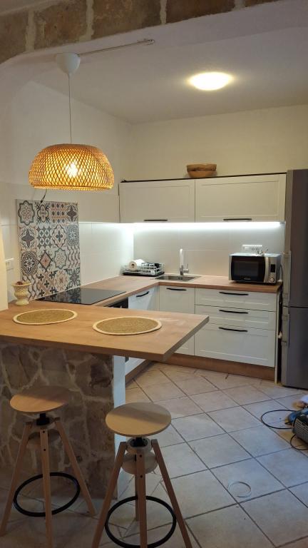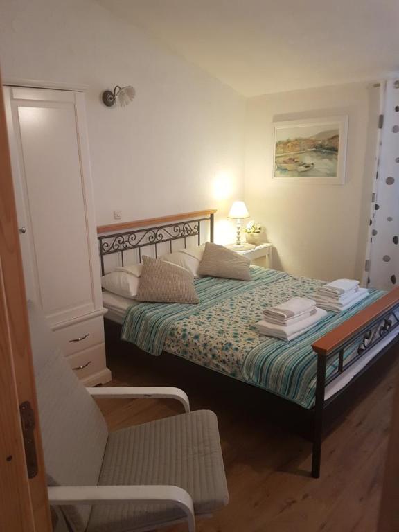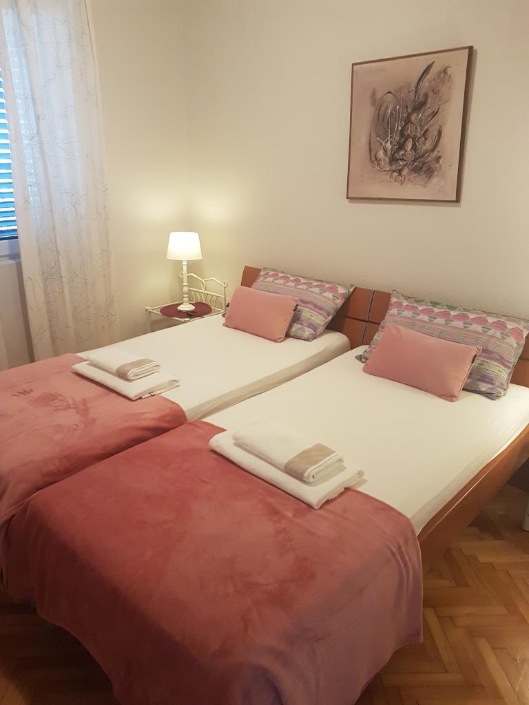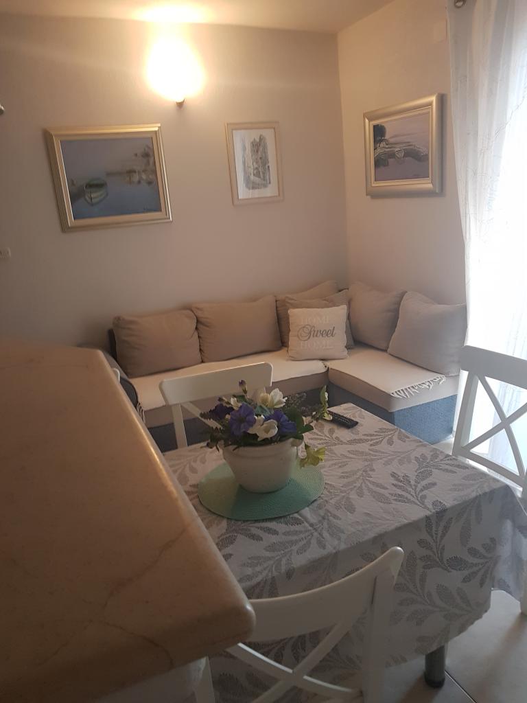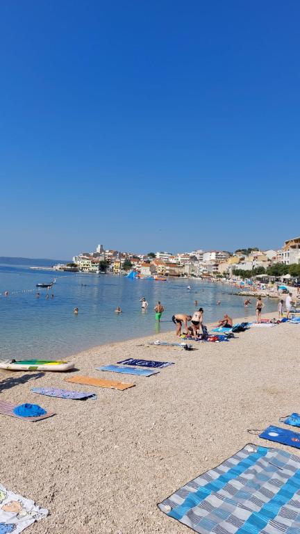 Hiša se nahaja tik ob plaži. Ima 4 apartmaje. Kapaciteta je 18 postelj. Vsak apartma ima veliko teraso s čudovitim razgledom na celotno mesto, Pag in sončni zahod.