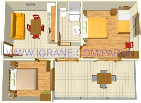 Apartmaji Parun se nahajajo v Igranah. Sam objekt se nahaja na plaži v najlepšem delu mesta, ki ni daleč od centra, ponoči pa je mirno, saj v neposredni bližini ni restavracij. Objekt ima velik vrt in je obdan s cvetjem in zelenjem. Vsak apartma ima zagotovljeno parkirišče za eno vozilo, ki je vključeno v ceno.
